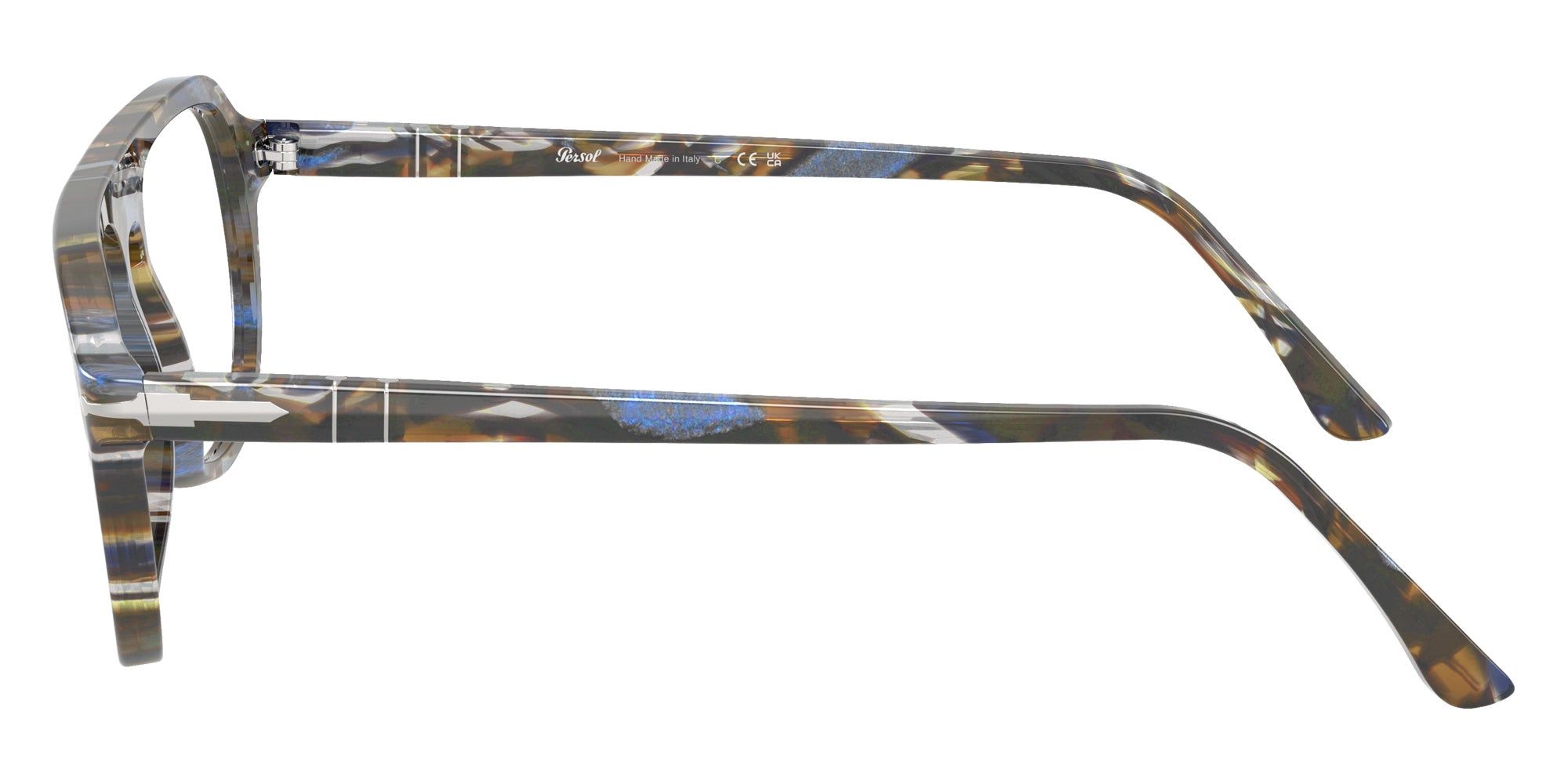 The aviator shape desing feature a full rim acetate frame. This model is available in two different color combinations and sizes. Persol is one of the oldest and most iconic eyewear brands. It is instantly recognizable for its arrow logo, which reflects the tenacity of the company founder Giuseppe Ratti. Experimenting with innovative materials, the company has developed products with unique characteristics. Every detail of Persol accessories is handcrafted using the highest quality materials. Persol was one of the first to make glasses from cellulose acetate. Due to the naturalness and hypoallergenic properties of this material, the brand's glasses do not irritate the skin and contribute to maximum comfort.
