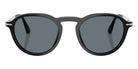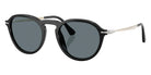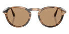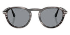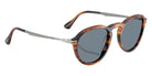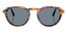 Striped Black and Brown (123556) Sunglasses with Light Blue lenses (PO3383S 123556 54) by Persol™. Size: 54-21-145, Shape: Wayfarer, Material: Acetate and Metal.