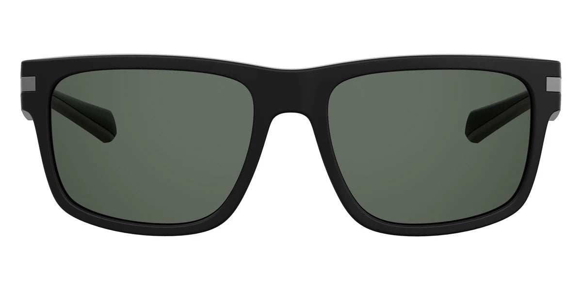 Matte Black (0003M9) Sunglasses with Gray Polarized lenses (PLD 2066/S 0003M9 56) by Polaroid™. Size: 56-18-135, Shape: Rectangle, Material: Plastic.