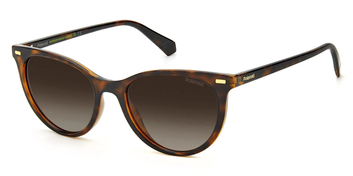 Havana (0086LA) Sunglasses with Brown Gradient Polarized lenses (PLD 4107/S 0086LA 52) by Polaroid™. Size: 52-18-145, Shape: Cat-Eye / Butterfly, Material: Eco Polyamide.