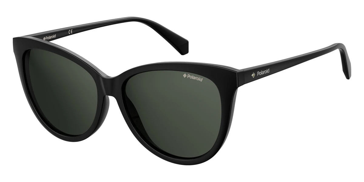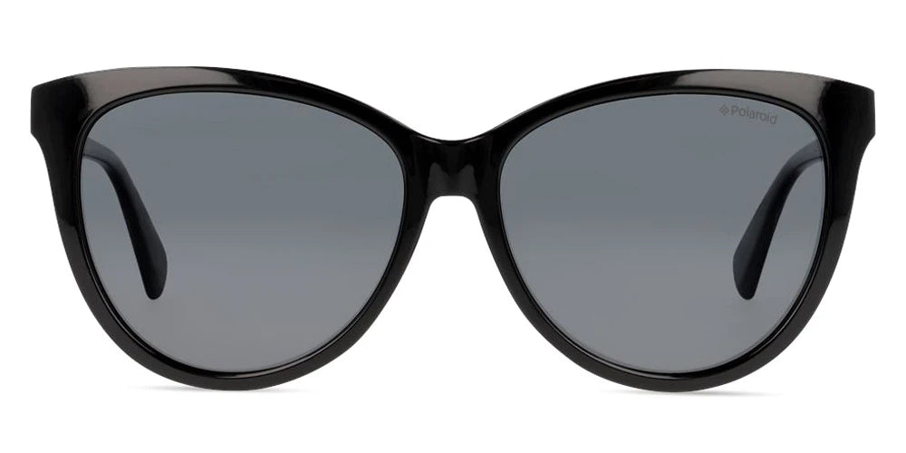 Black (0807M9) Sunglasses with Gray Polarized lenses (PLD 6104/S/X 0807M9 56) by Polaroid™. Size: 56-15-145, Shape: Cat-Eye / Butterfly, Material: Plastic.