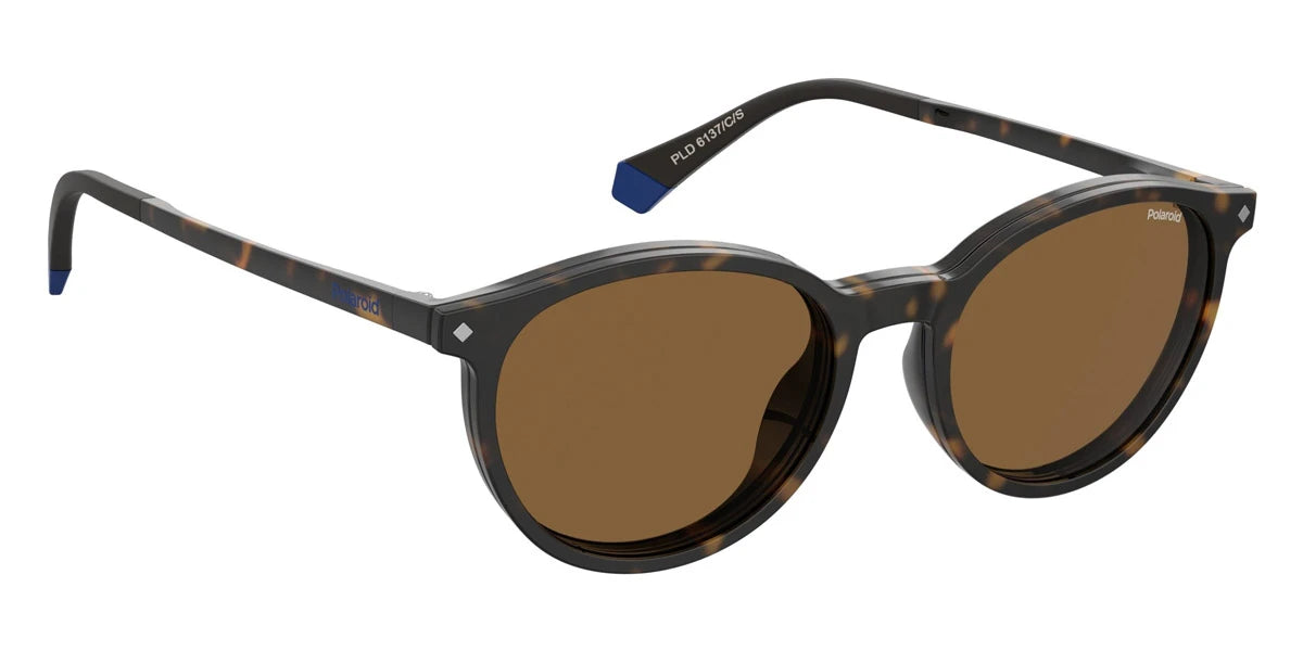 Havana (0086SP) Sunglasses with Bronze Polarized lenses (PLD 6137/CS 0086SP 52) by Polaroid™. Size: 52-18-145, Shape: Oval, Material: Polyamide Inj-Gril..