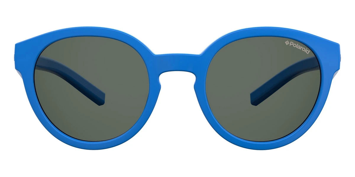 Blue (0PJPM9) Sunglasses with Gray Polarized lenses (PLD 8019/S/sm 0PJPM9 42) by Polaroid™. Size: 42-17-120, Shape: Oval, Material: Plastic.
