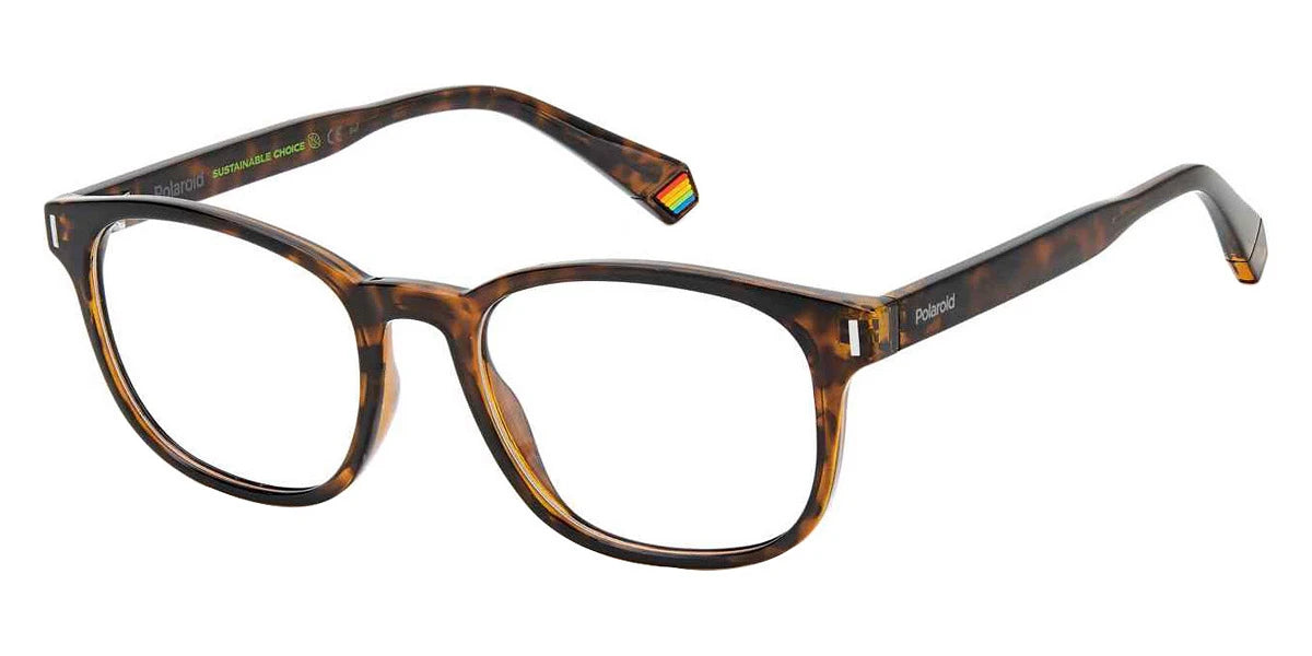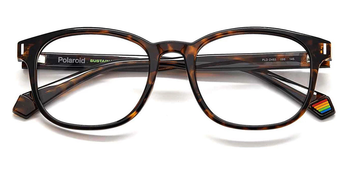 Havana (0086) Eyeglasses (PLD D453 0086 52) by Polaroid™. Size: 52-19-145, Shape: Square, Material: Plastic.
