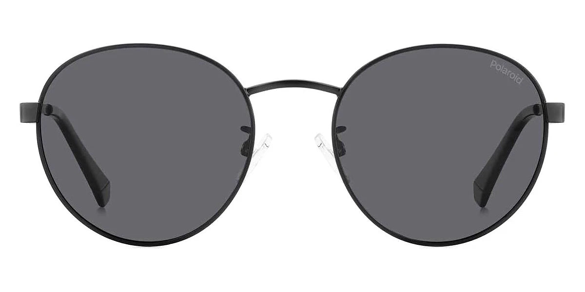 Matte Black (0003M9) Sunglasses with Gray Polarized lenses (PLD 2144/G/S/X 0003M9 52) by Polaroid™. Size: 52-19-145, Shape: Oval, Material: Stainless Steel.
