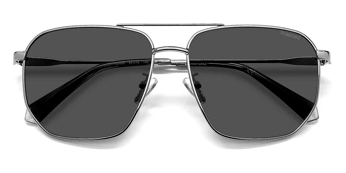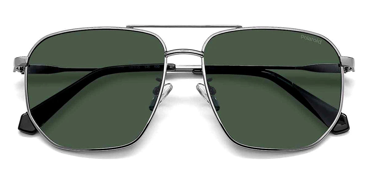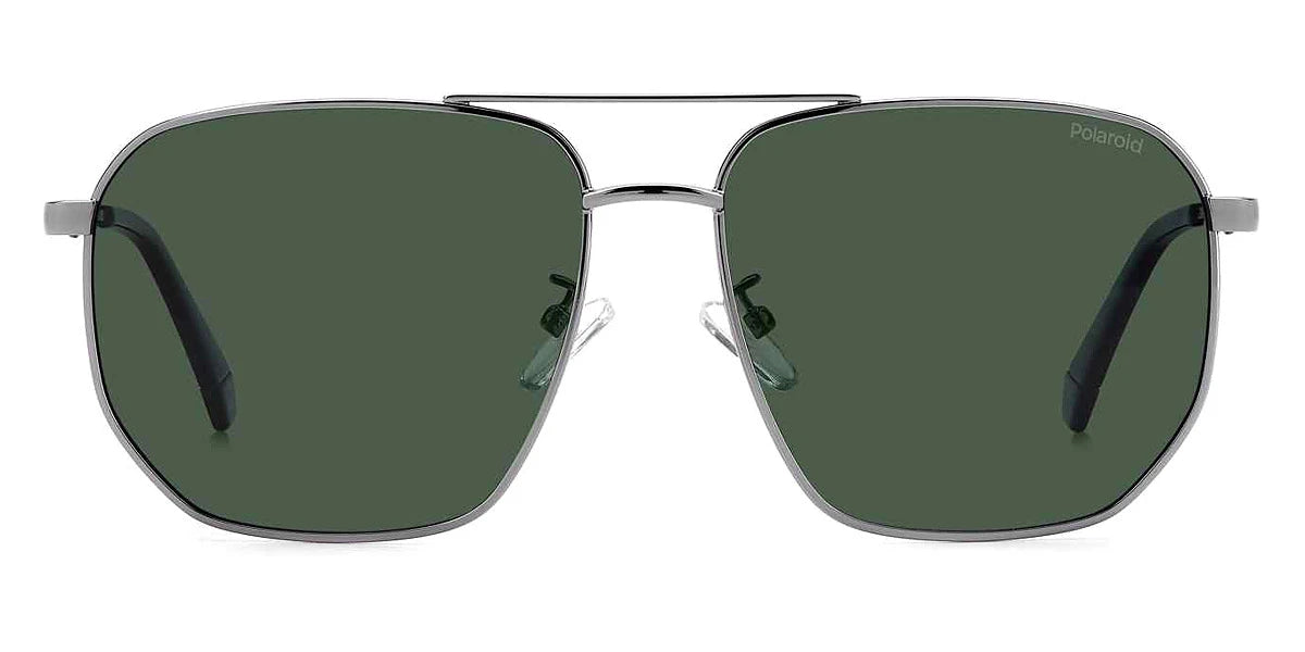 Ruthenium (06LBUC) Sunglasses with Green Polarized lenses (PLD 4141/G/S/X 06LBUC 59) by Polaroid™. Size: 59-15-145, Shape: Rectangle, Material: Metal Regular.