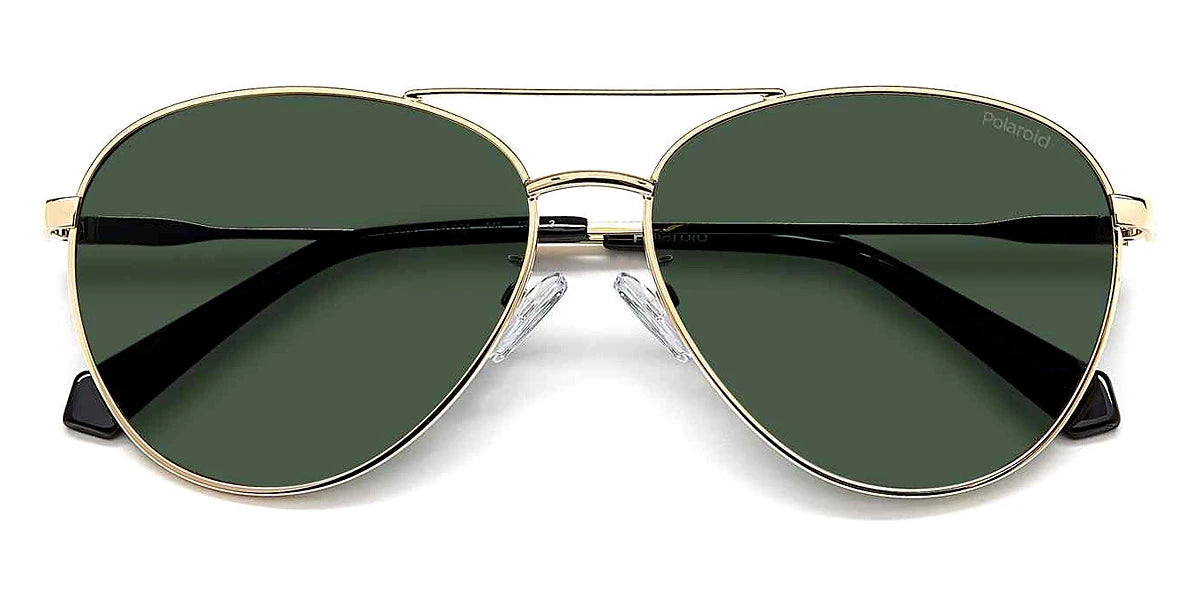 Gold Green (0PEFUC) Sunglasses with Green Polarized lenses (PLD 4142/G/S/X 0PEFUC 60) by Polaroid™. Size: 60-14-145, Shape: Aviator, Material: Metal Regular.