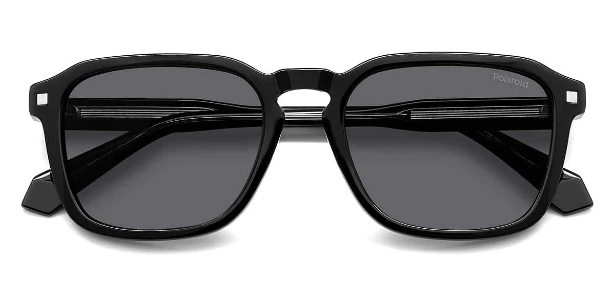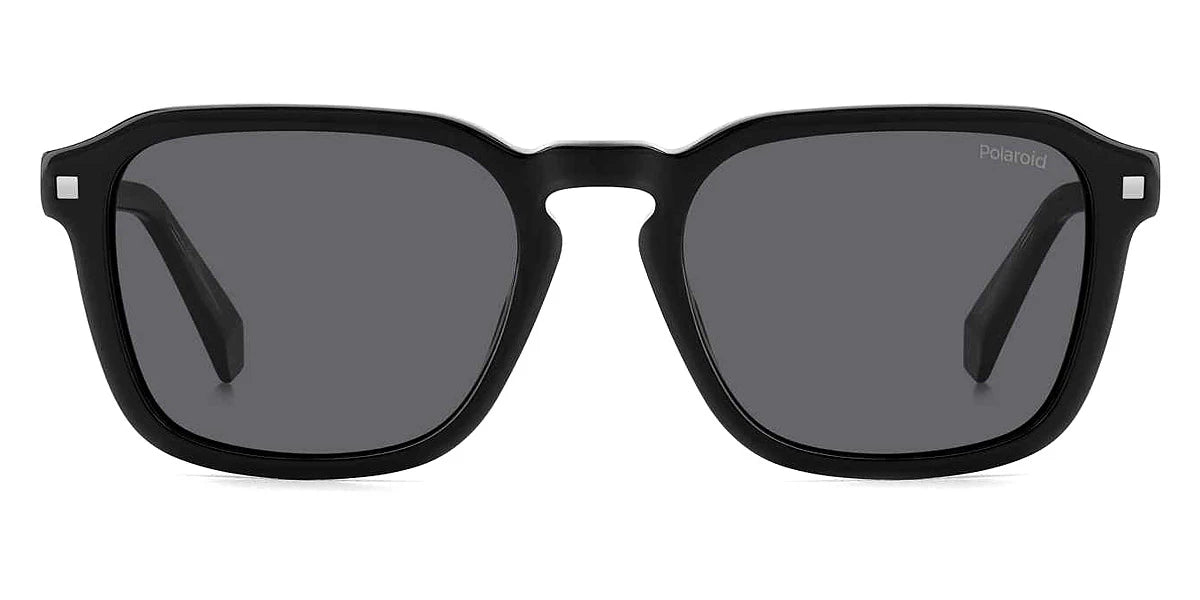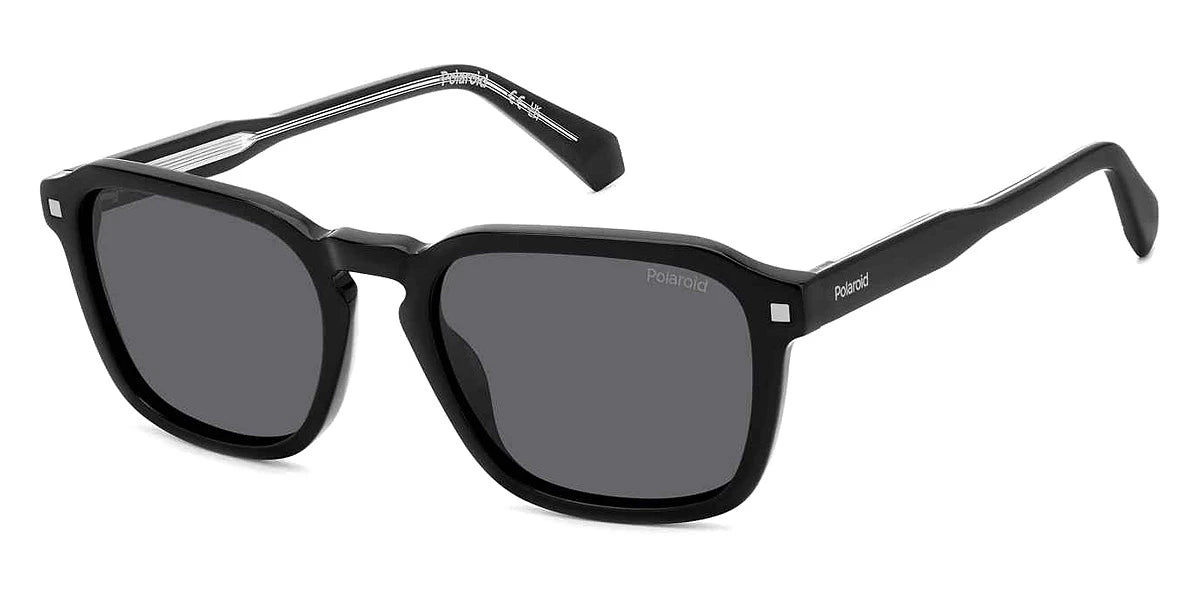 Black (0807M9) Sunglasses with Gray Polarized lenses (PLD 4156/S/X 0807M9 53) by Polaroid™. Size: 53-19-145, Shape: Rectangle, Material: Acetate.