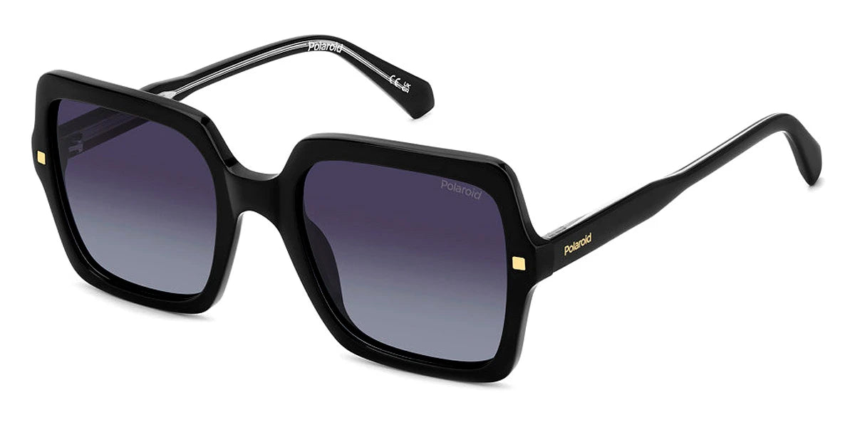 Black (0807WJ) Sunglasses with Gray Shaded Polarized lenses (PLD 4165/S/X 0807WJ 55) by Polaroid™. Size: 55-21-145, Shape: Square, Material: Acetate.