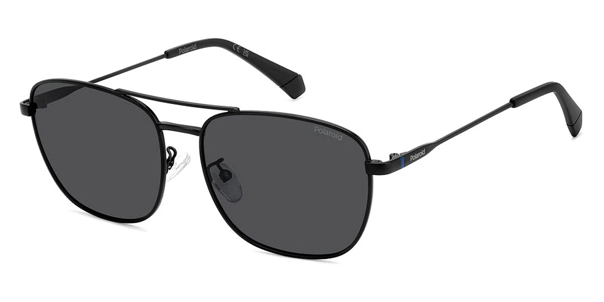 Matte Black (0003M9) Sunglasses with Gray Polarized lenses (PLD 4172/G/S/X 0003M9 59) by Polaroid™. Size: 59-16-145, Shape: Aviator, Material: Stainless Steel and Metal.