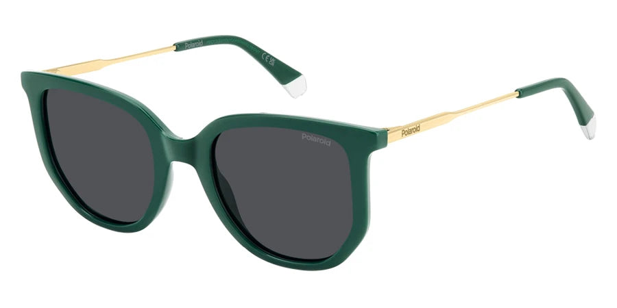 Green (01EDM9) Sunglasses with Gray Polarized lenses (PLD 4185/S/X 01EDM9 51) by Polaroid™. Size: 51-21-145, Shape: Rectangle, Material: Eco Polycarbonate and Eco Stainless Steel.