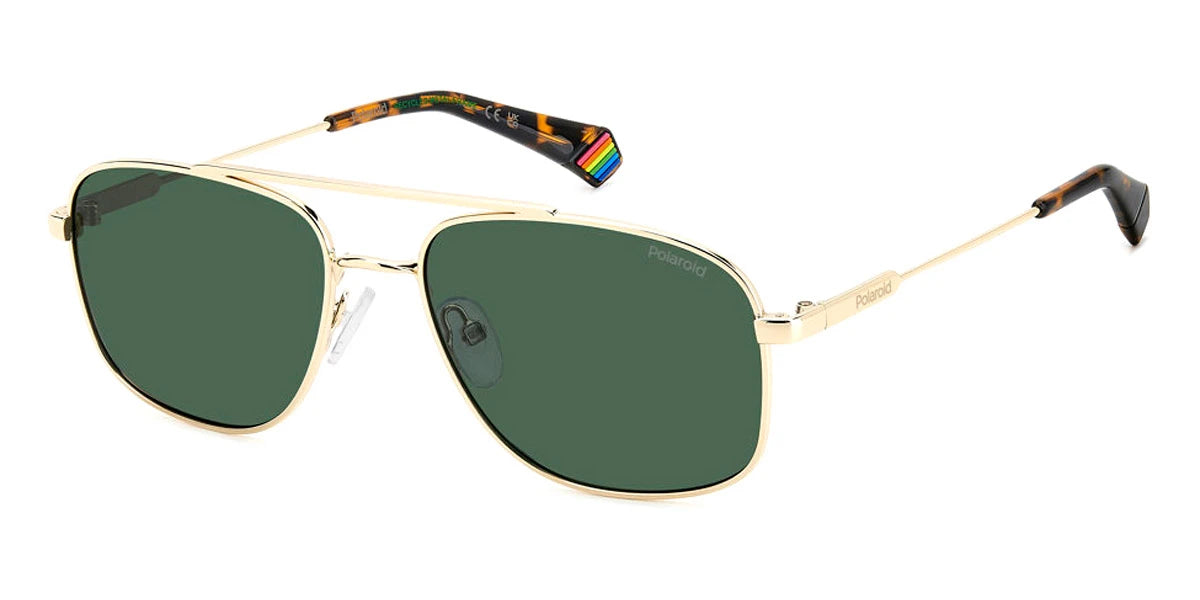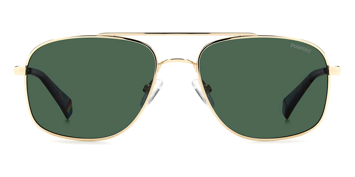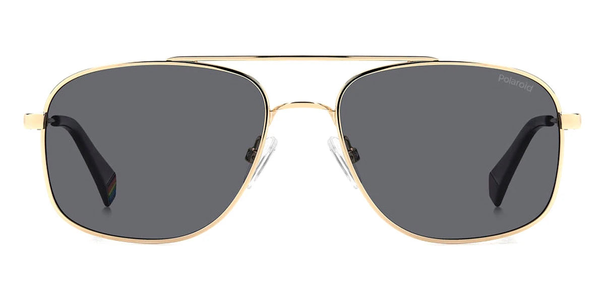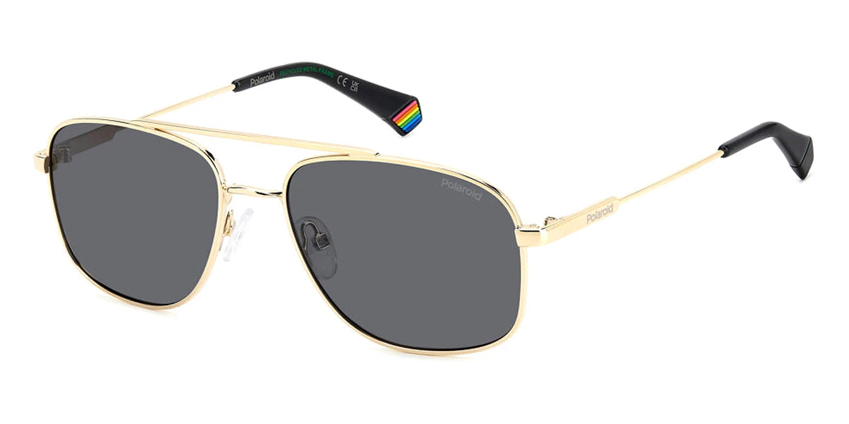 Gold Gray (02F7M9) Sunglasses with Gray Polarized lenses (PLD 6235/S/X 02F7M9 56) by Polaroid™. Size: 56-17-145, Shape: Rectangle, Material: Eco Stainless Steel and Eco Metal.