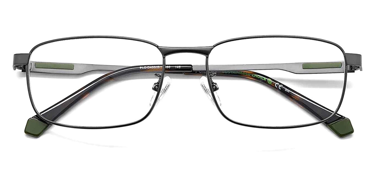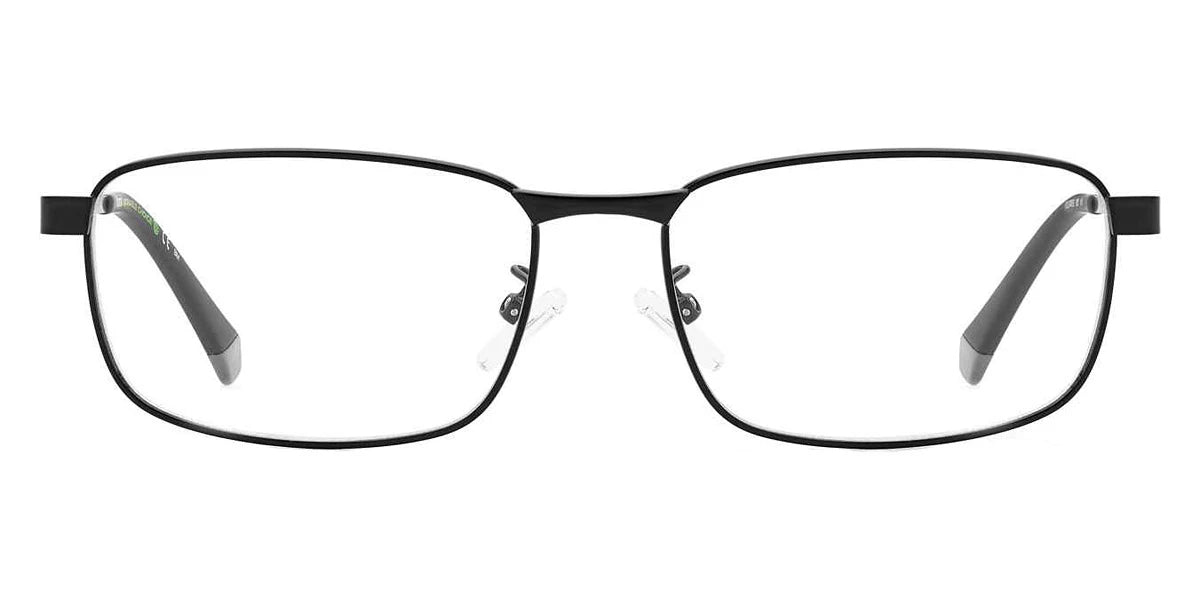 Matte Black (0003) Eyeglasses (PLD D480/G 0003 57) by Polaroid™. Size: 57-17-145, Shape: Rectangle, Material: Stainless Steel.