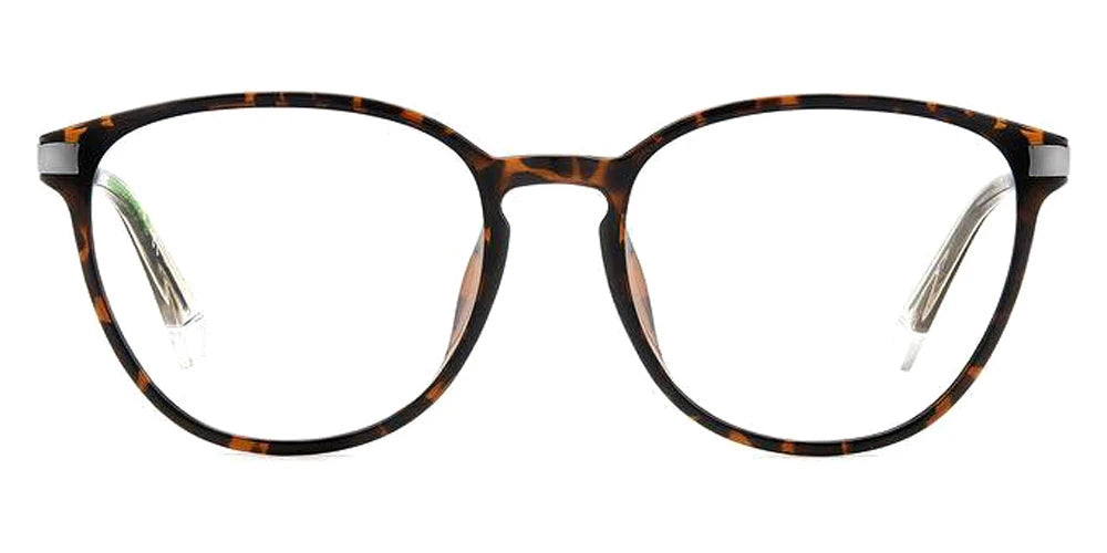 Havana (0086) Eyeglasses (PLD D489/G 0086 52) by Polaroid™. Size: 52-17-145, Shape: Square, Material: Eco Polyamide and Metal Regular.