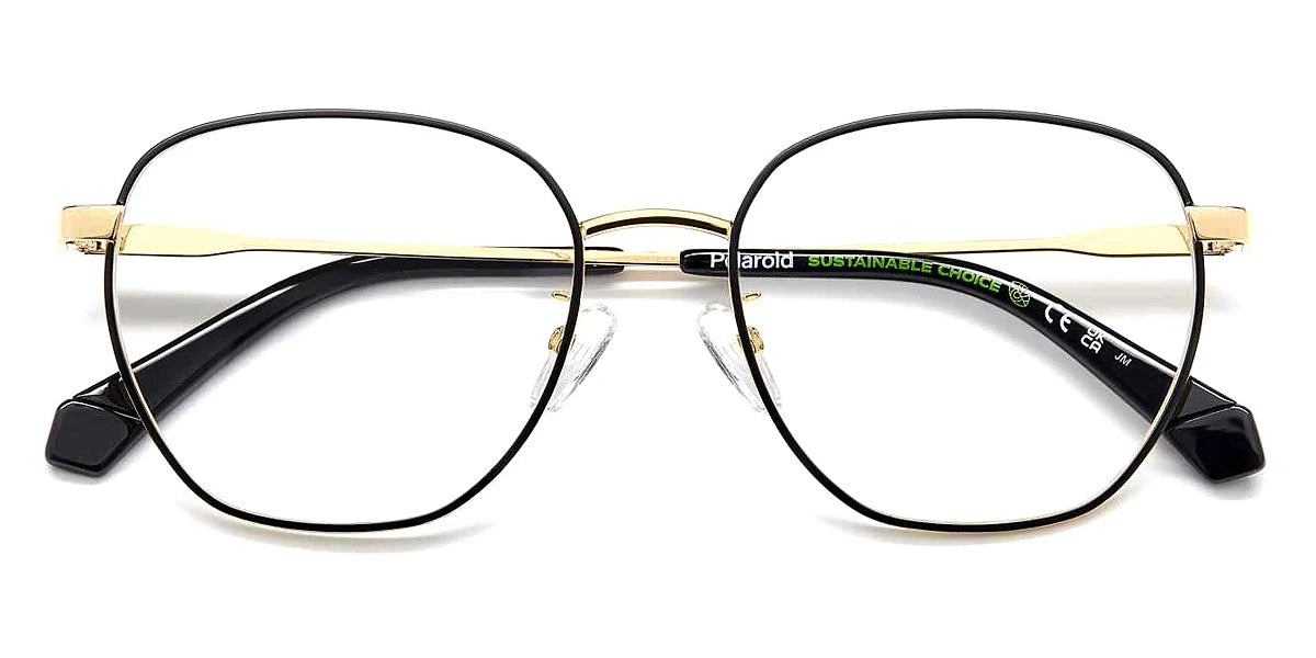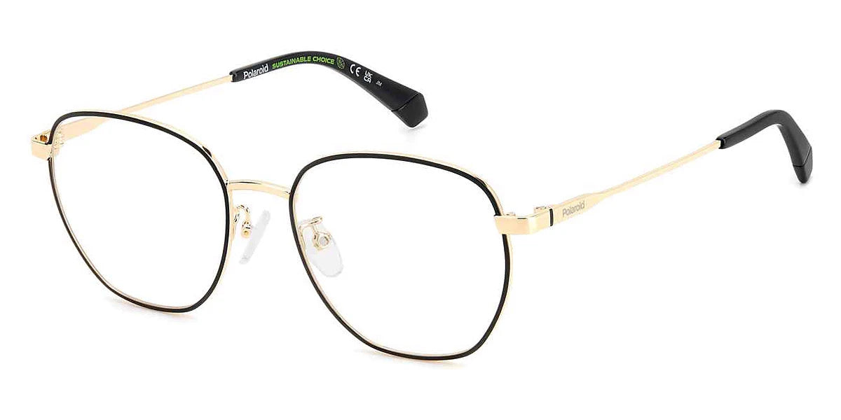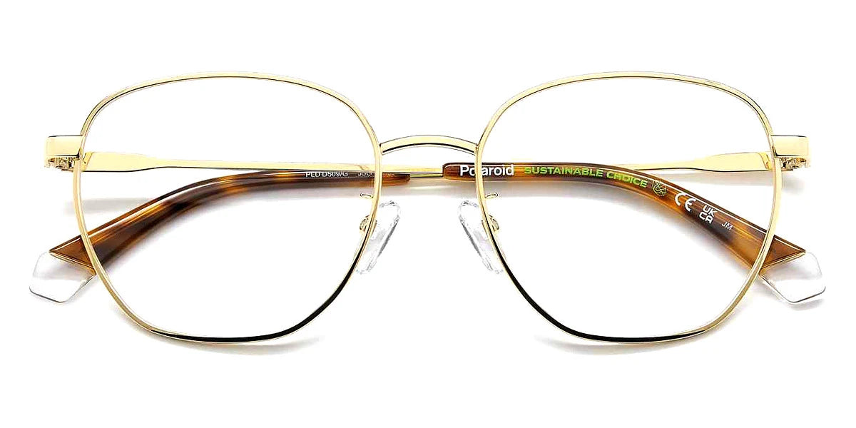 Matte Black Gold (0I46) Eyeglasses (PLD D509/G 0I46 53) by Polaroid™. Size: 53-18-145, Shape: Geometric, Material: Stainless Steel and Metal Regular.