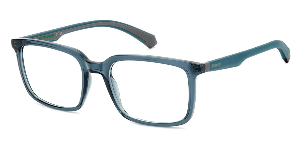 Blue (0PJP) Eyeglasses (PLD D547 0PJP 55) by Polaroid™. Size: 55-19-145, Shape: Rectangle, Material: Eco Polyamide and Eco Rubber.