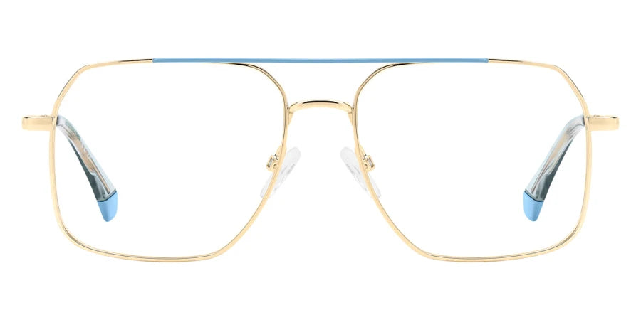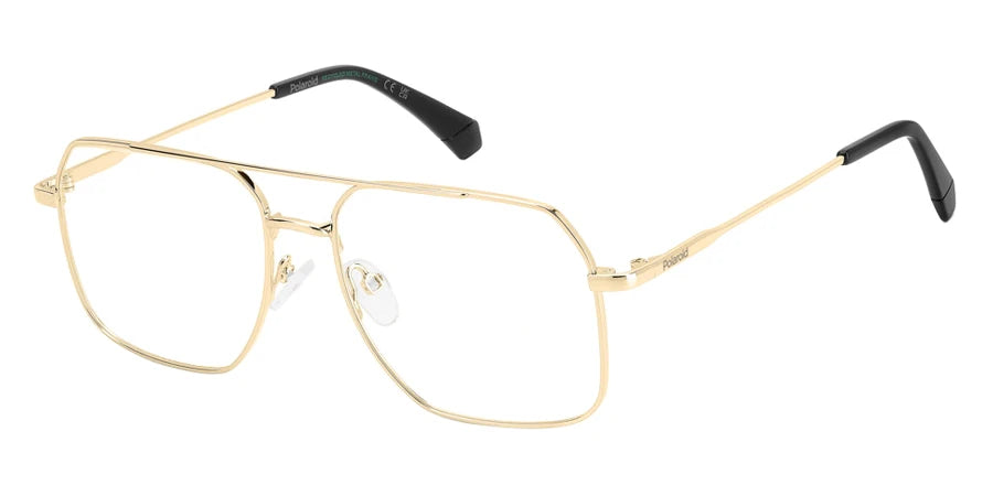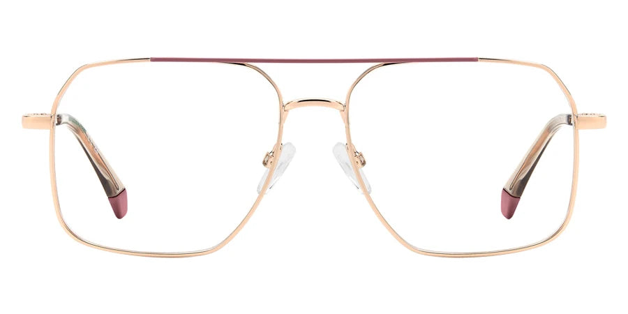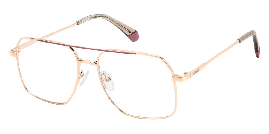 Gold Pink (0EYR) Eyeglasses (PLD D554 0EYR 55) by Polaroid™. Size: 55-16-145, Shape: Rectangle, Material: Eco Stainless Steel and Eco Metal.