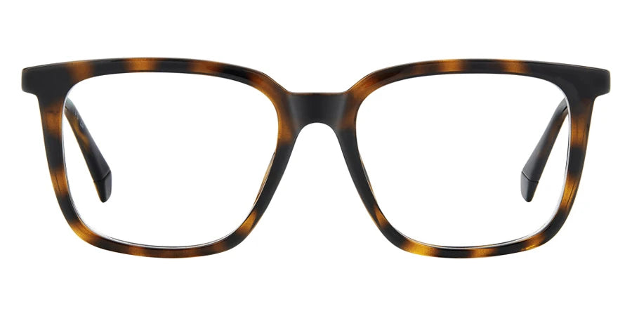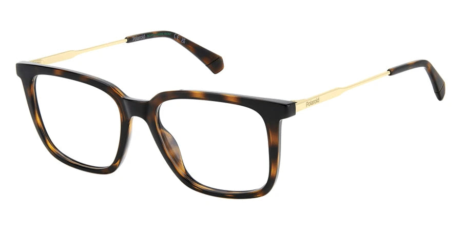 Havana (0086) Eyeglasses (PLD D565 0086 53) by Polaroid™. Size: 53-17-145, Shape: Rectangle, Material: Eco Polyamide and Eco Metal.