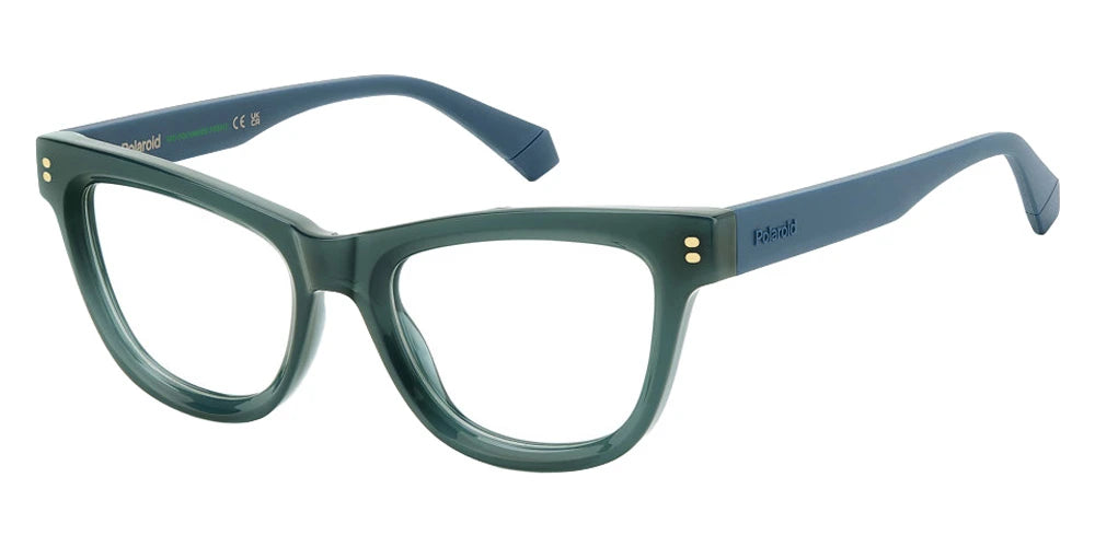 Teal (0ZI9) Eyeglasses (PLD D576 0ZI9 51) by Polaroid™. Size: 51-19-140, Shape: Cat-Eye, Material: Eco Polyamide and Rubber.