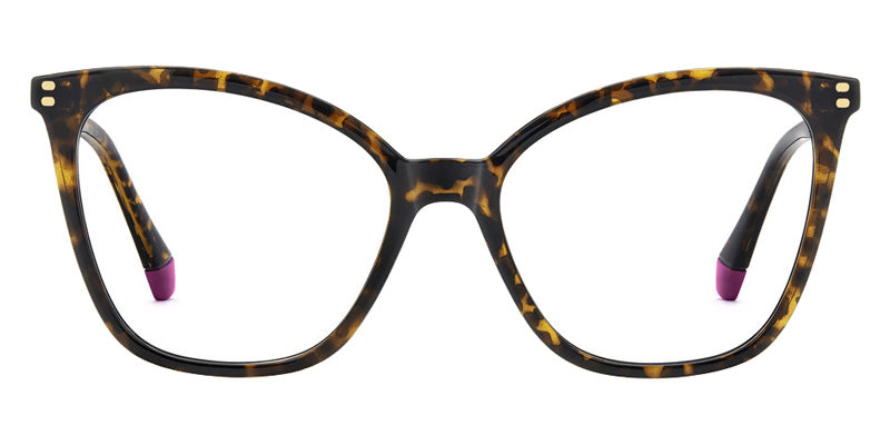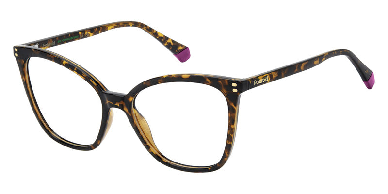 Havana (0086) Eyeglasses (PLD D579 0086 55) by Polaroid. Size: 55-17-140, Shape: Cat-Eye, Material: Eco Polyamide.