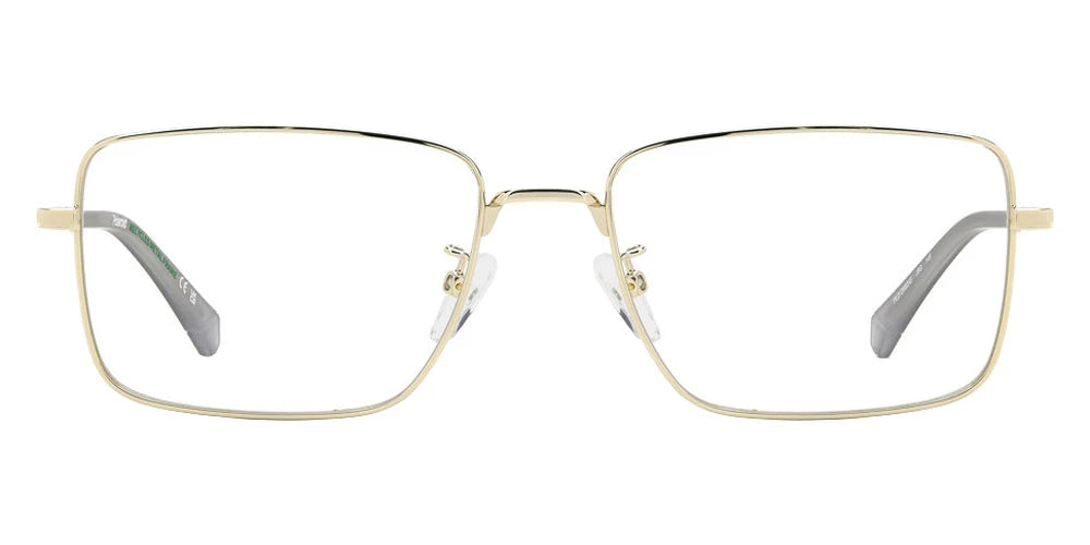Gold (0J5G) Eyeglasses (PLD D582/G 0J5G 57) by Polaroid™. Size: 57-18-145, Shape: Rectangle, Material: Eco Stainless Steel and Eco Metal.