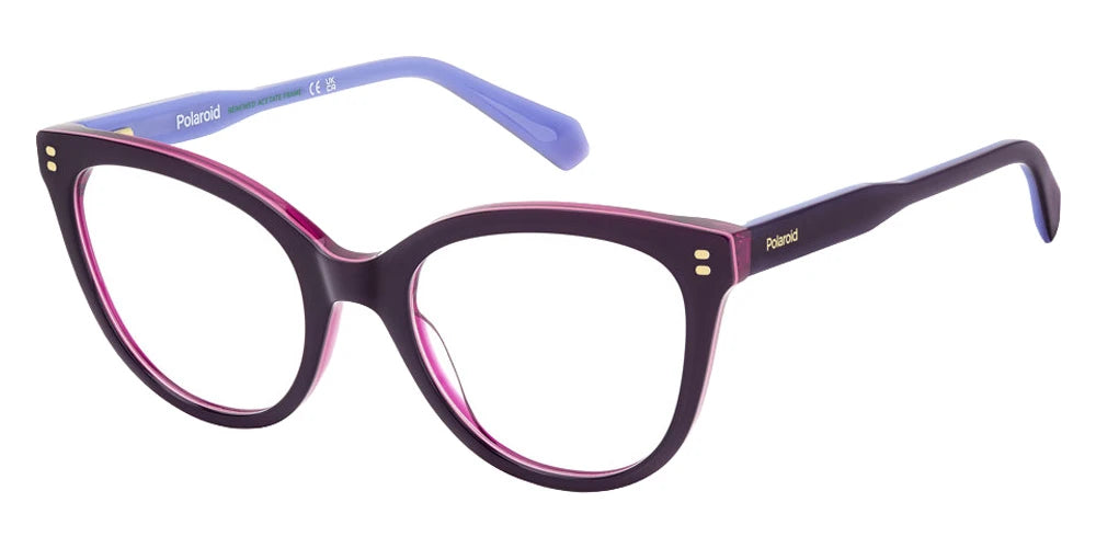Blue (0PJP) Eyeglasses (PLD D585 0PJP 52) by Polaroid™. Size: 52-20-145, Shape: Cat-Eye, Material: Eco Acetate.