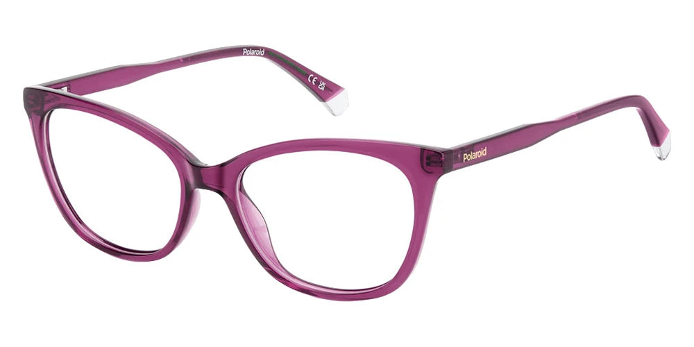 Fuchsia (0MU1) Eyeglasses (PLD D587 0MU1 54) by Polaroid™. Size: 54-17-145, Shape: Cat-Eye, Material: Eco Polyamide.