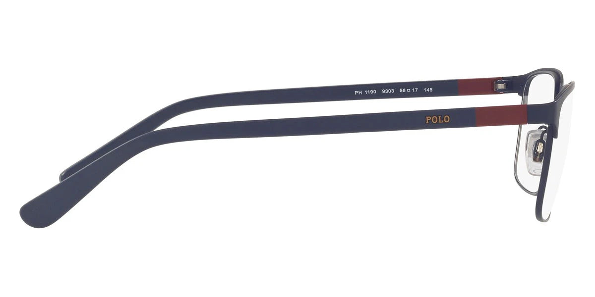 Matte Navy Blue (9303) Eyeglasses (PH1190 9303 56) by POLO RALPH LAUREN™. Size: 56-17-145, Shape: Rectangle, Material: Metal and Plastic.