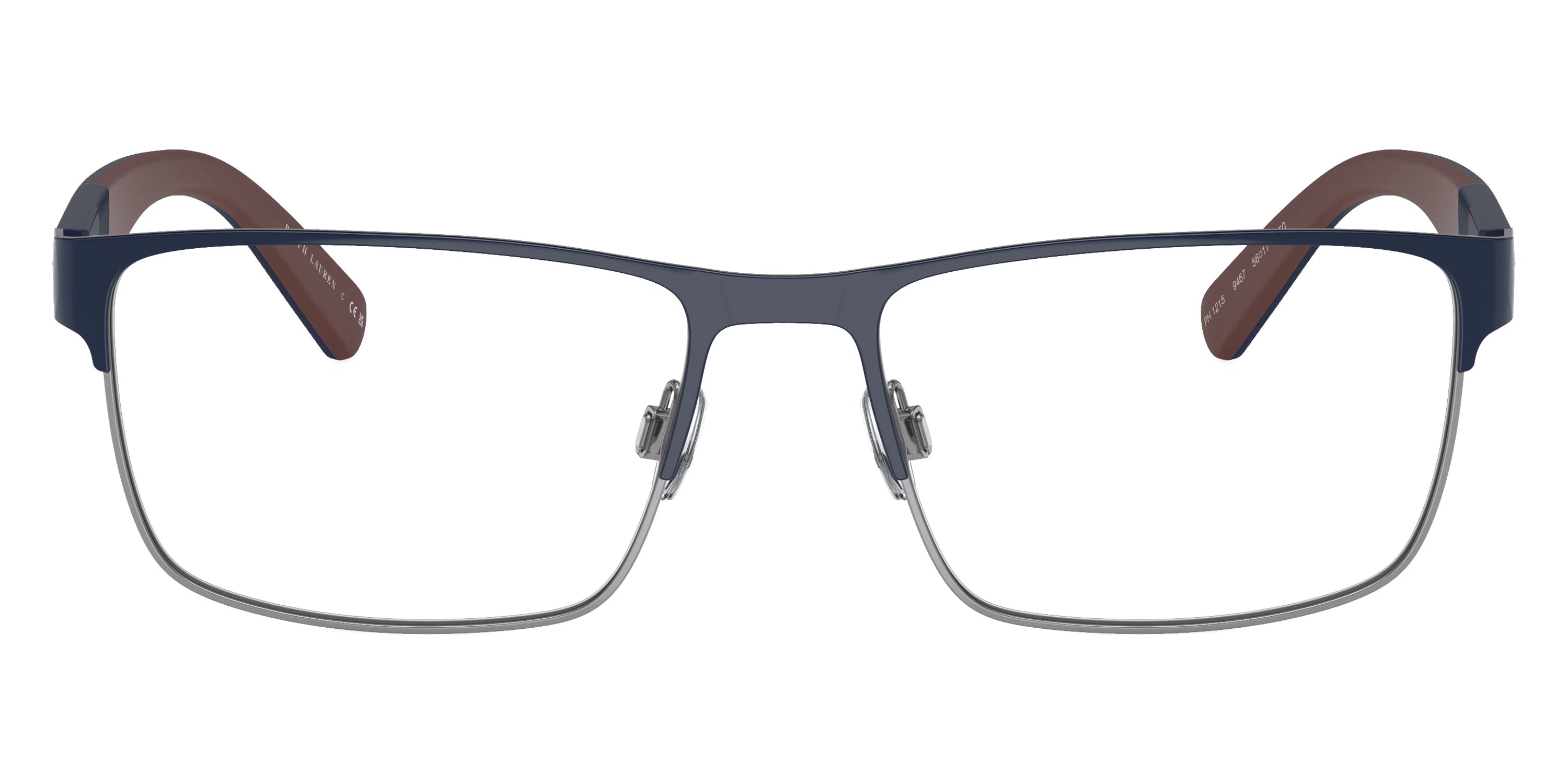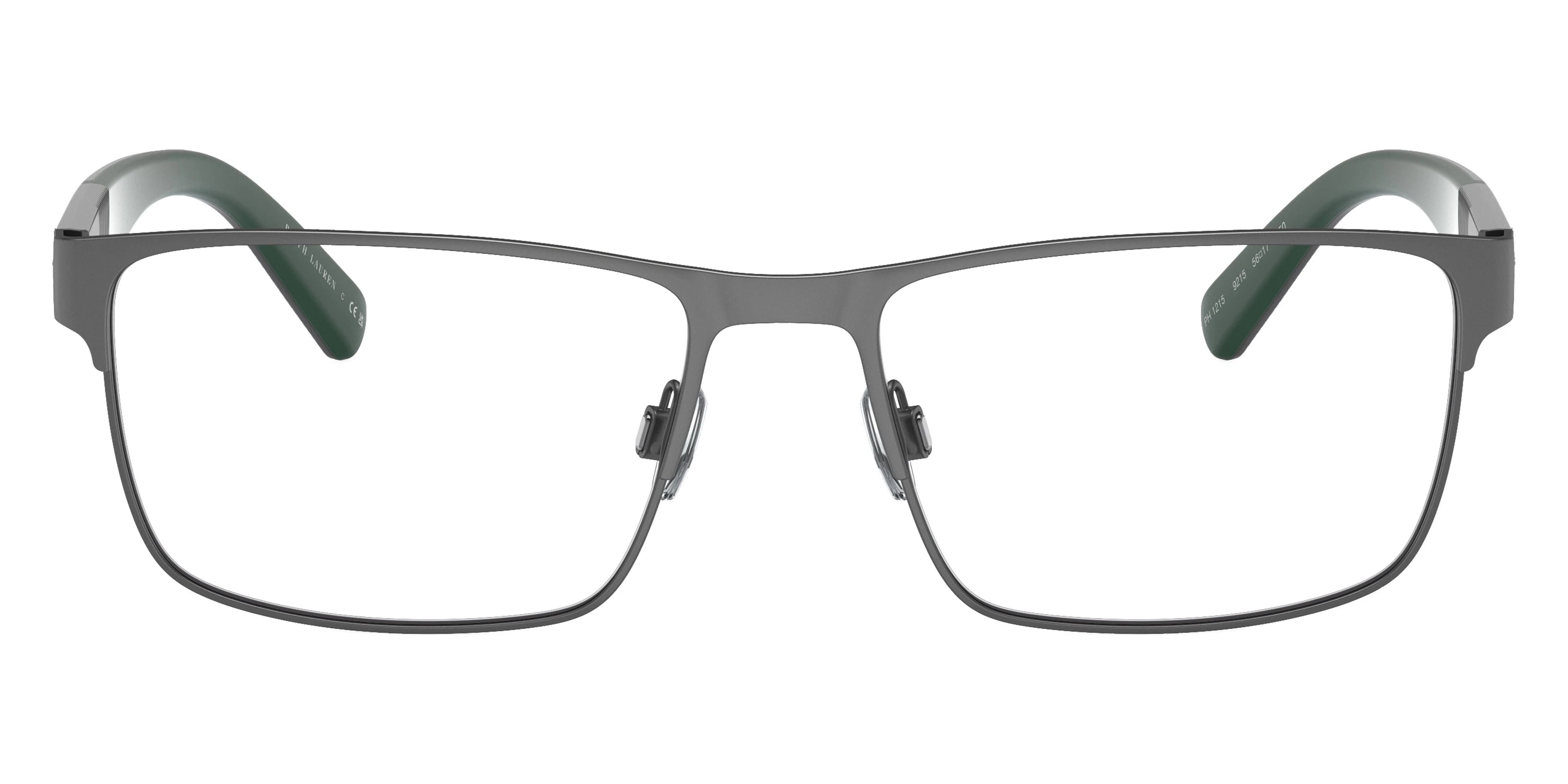Semishiny Dark Gunmetal (9307) Eyeglasses (PH1215 9307 56) by POLO RALPH LAUREN™. Size: 56-17-150, Shape: Rectangle, Material: Metal.