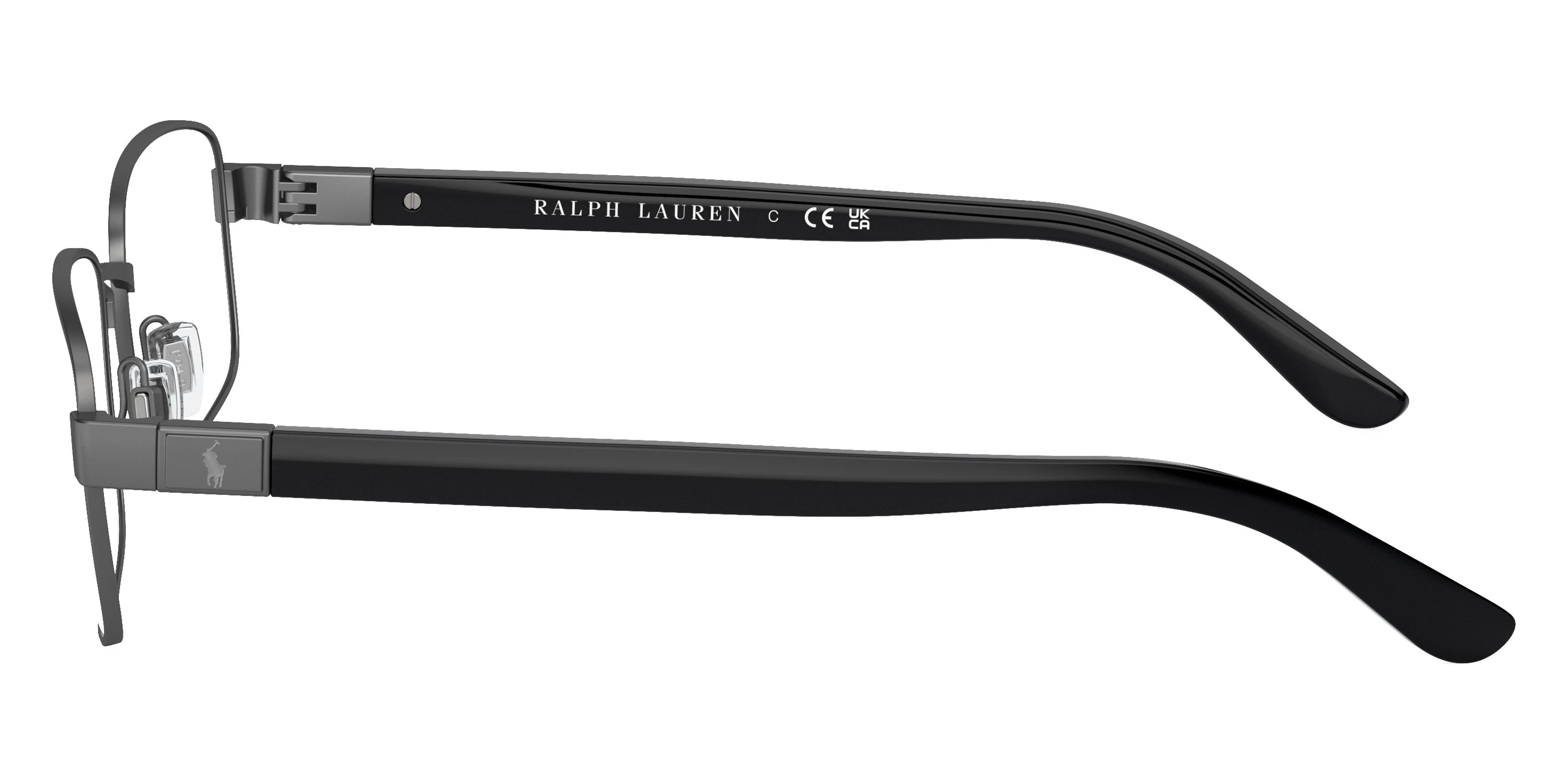 Semishiny Dark Gunmetal/Shiny Black (9307) Eyeglasses (PH1223 9307 57) by POLO RALPH LAUREN™. Size: 57-19-145, Shape: Rectangle, Material: Metal and Propionate.