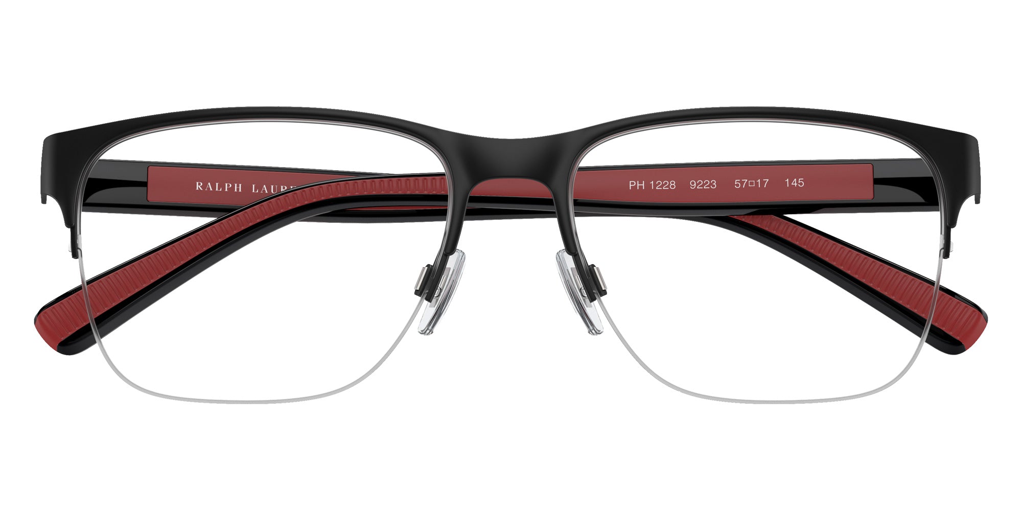 Semishiny Dark Gunmetal (9307) Eyeglasses (PH1228 9307 54) by POLO RALPH LAUREN. Size: 54-17-145, Shape: Square, Material: Metal and Injected.