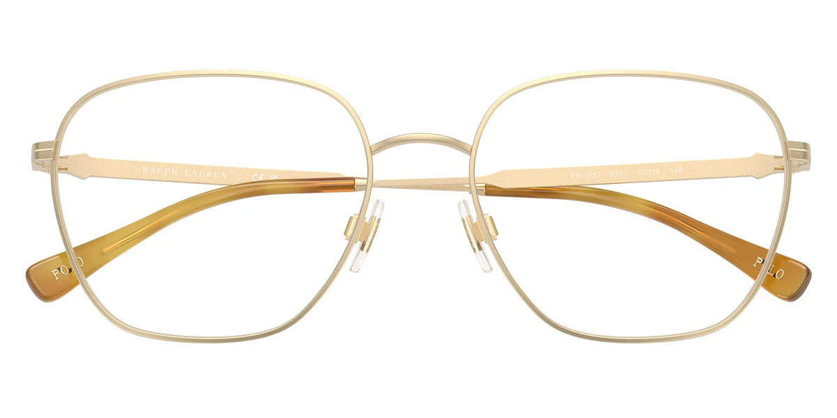 Semishiny Pale Gold (9211) Eyeglasses (PH1237 9211 55) by POLO RALPH LAUREN™. Size: 55-18-145, Shape: Irregular, Material: Metal.