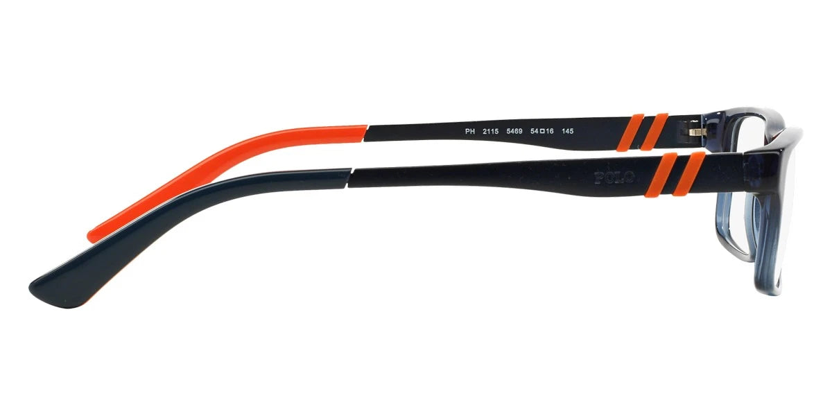 Shiny Transparent Blue (5469) Eyeglasses (PH2115 5469 52) by POLO RALPH LAUREN™. Size: 52-16-140, Shape: Rectangle, Material: Plastic and Metal.
