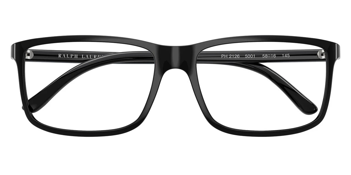 Matte Black (5505) Eyeglasses (PH2126 5505 55) by POLO RALPH LAUREN™. Size: 55-16-145, Shape: Rectangle, Material: Plastic.