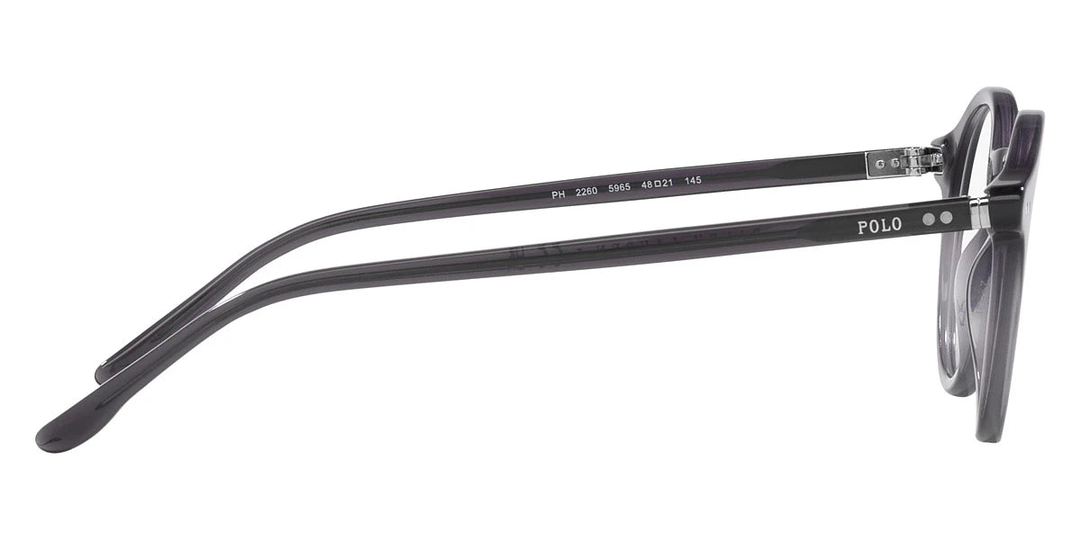Shiny Transparent Gray (5965) Eyeglasses (PH2260 5965 48) by POLO RALPH LAUREN™. Size: 48-21-145, Shape: Round, Material: Acetate.