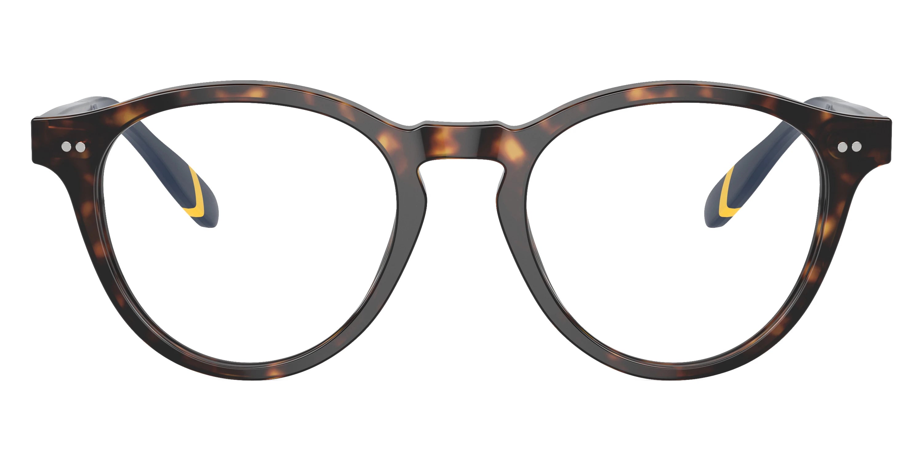Shiny Transparent Blue/Shiny Dark Havana/Blue (5470) Eyeglasses (PH2268F 5470 49) by POLO RALPH LAUREN™. Size: 49-20-145, Shape: Rectangle, Material: Acetate.