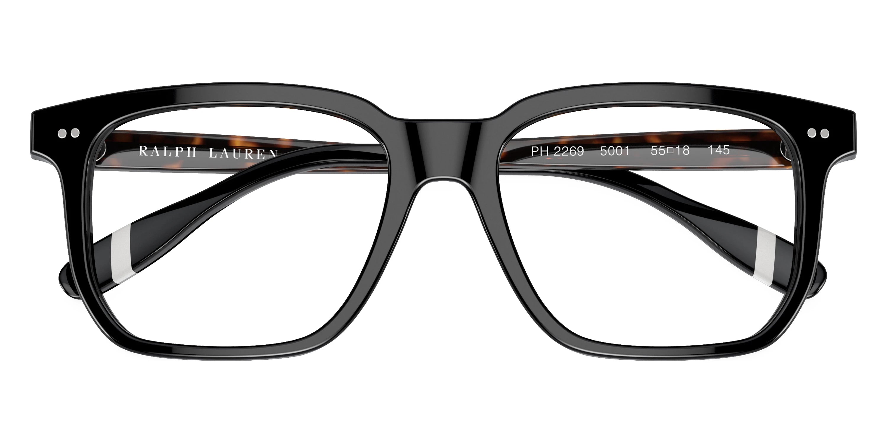 Shiny Black/Shiny Havana (5001) Eyeglasses (PH2269 5001 53) by POLO RALPH LAUREN™. Size: 53-18-145, Shape: Square, Material: Acetate.