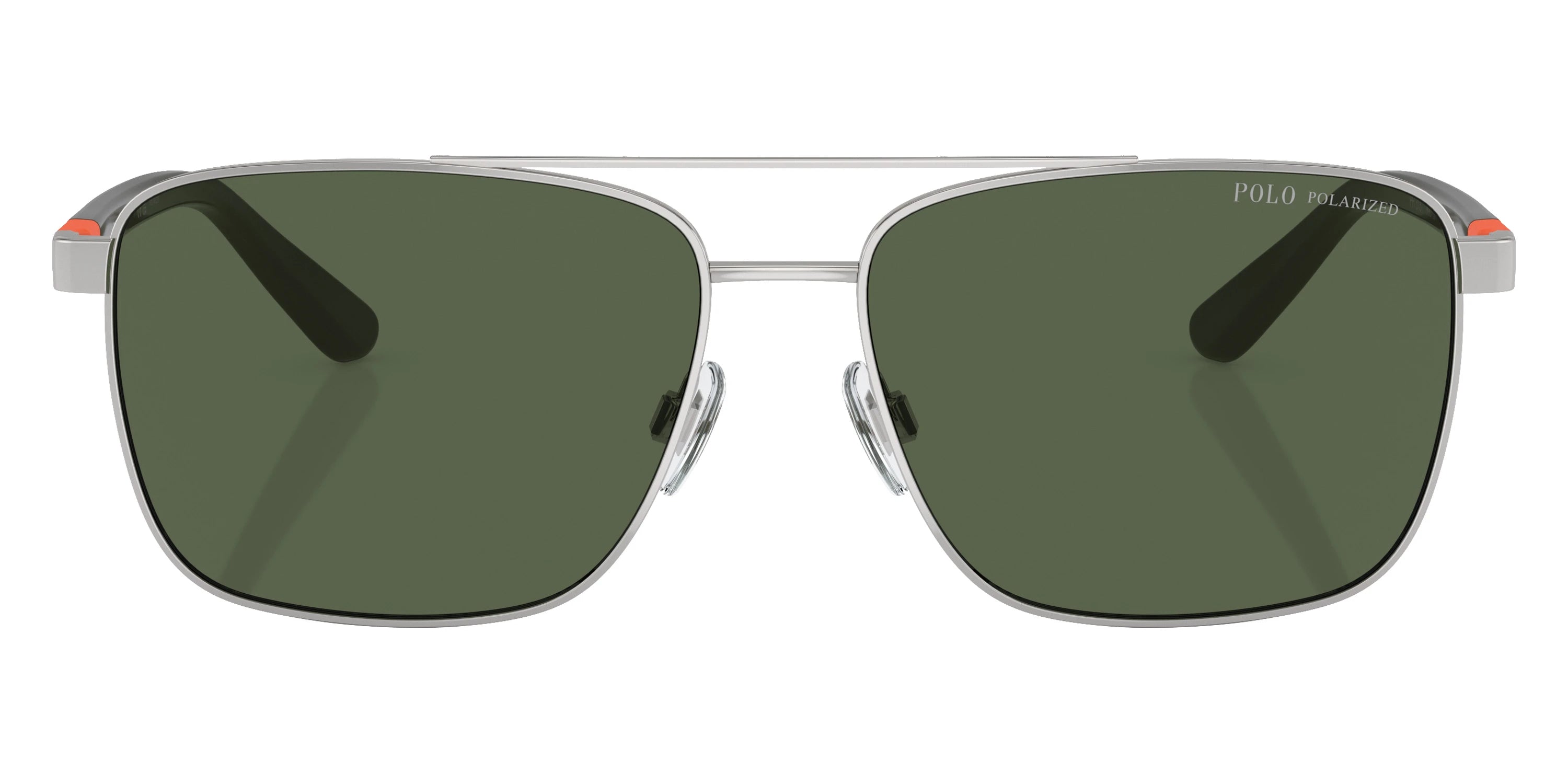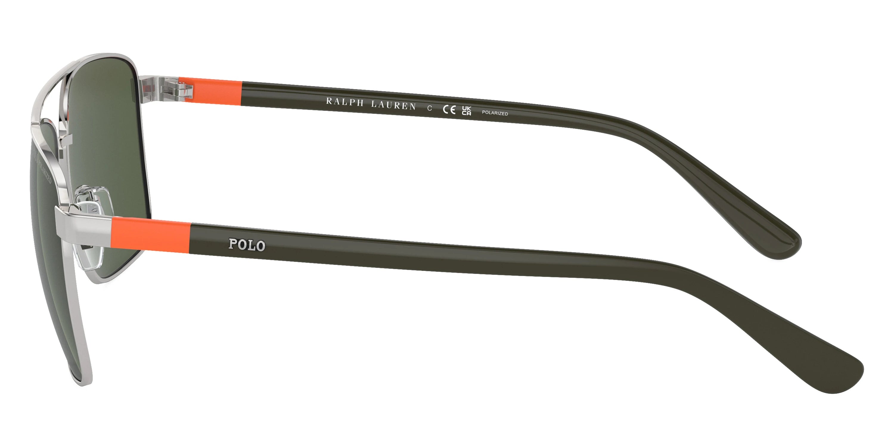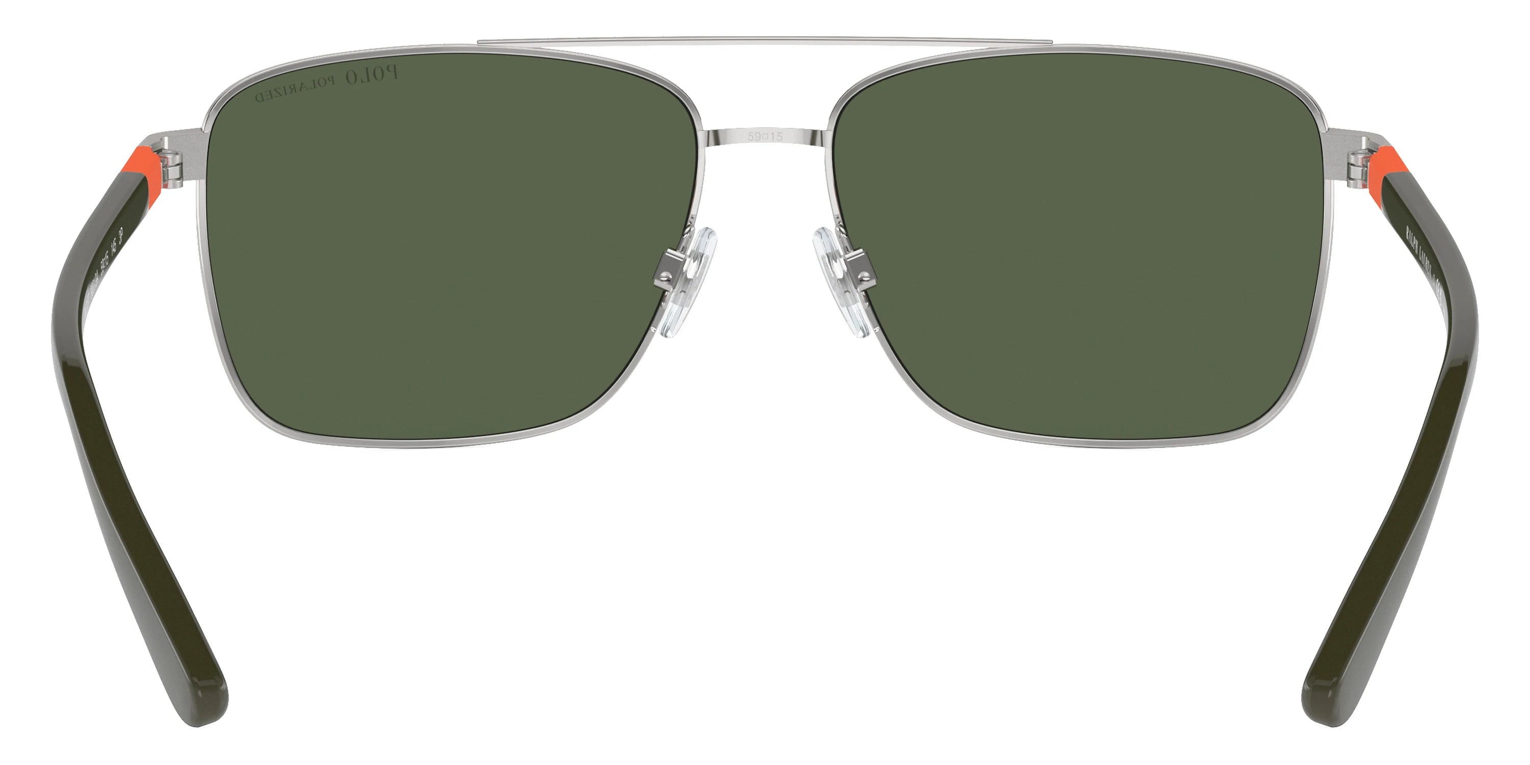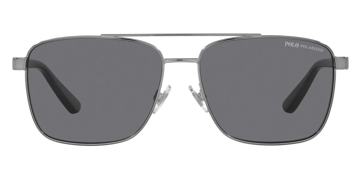 Shiny Gunmetal (900281) Sunglasses with Polarized Gray lenses (PH3137 900281 59) by POLO RALPH LAUREN™. Size: 59-15-145, Shape: Square, Material: Metal and Plastic.
