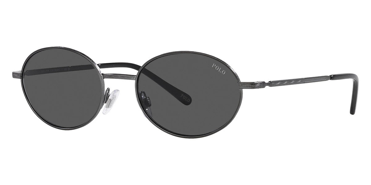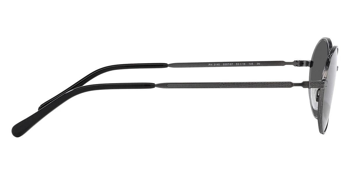 Semishiny Dark Gunmetal (930787) Sunglasses with Gray lenses (PH3145 930787 53) by POLO RALPH LAUREN™. Size: 53-19-145, Shape: Oval, Material: Metal.