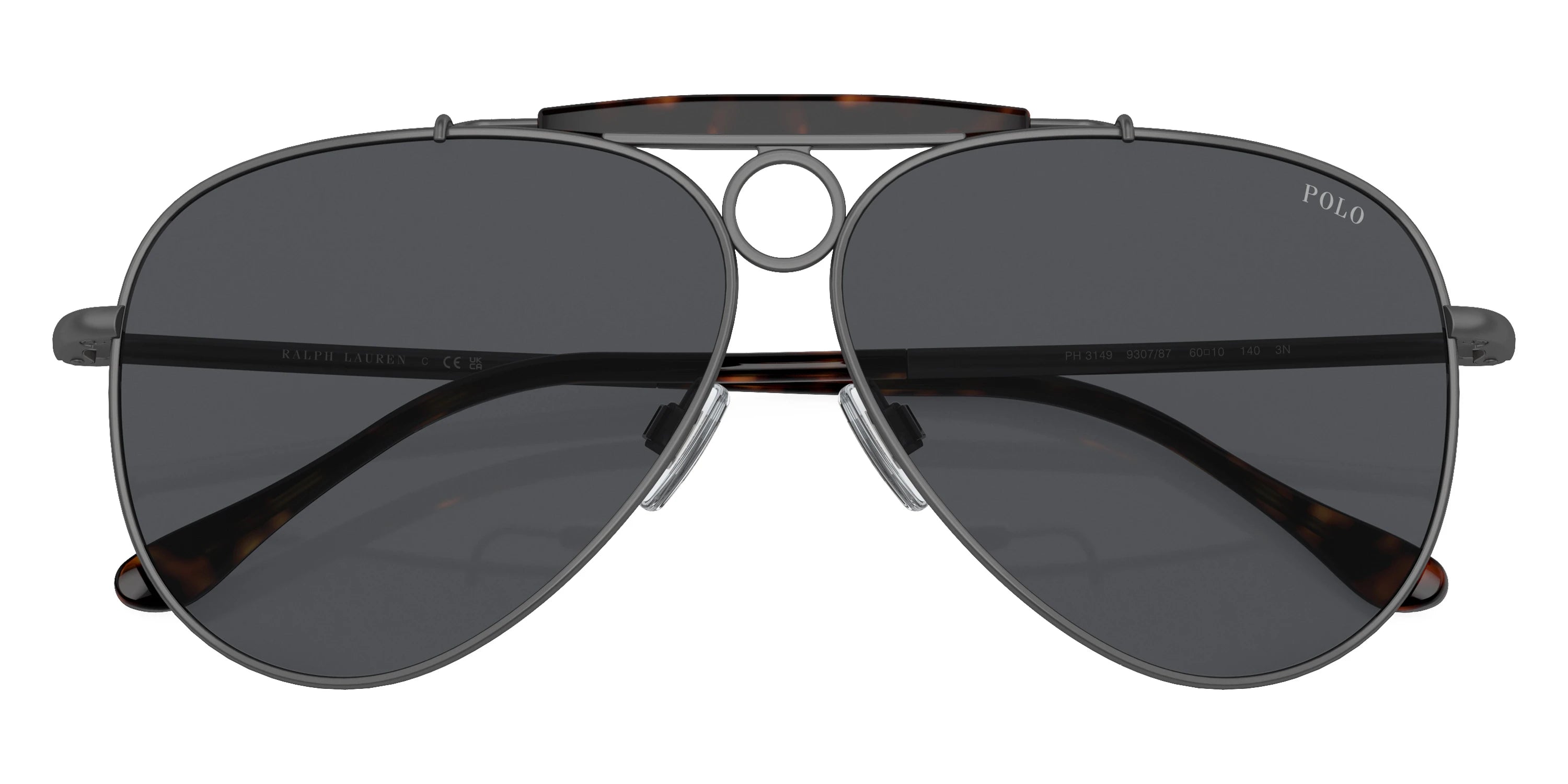 Semishiny Dark Gunmetal (930787) Sunglasses with Gray lenses (PH3149 930787 60) by POLO RALPH LAUREN™. Size: 60-10-140, Shape: Aviator, Material: Metal.