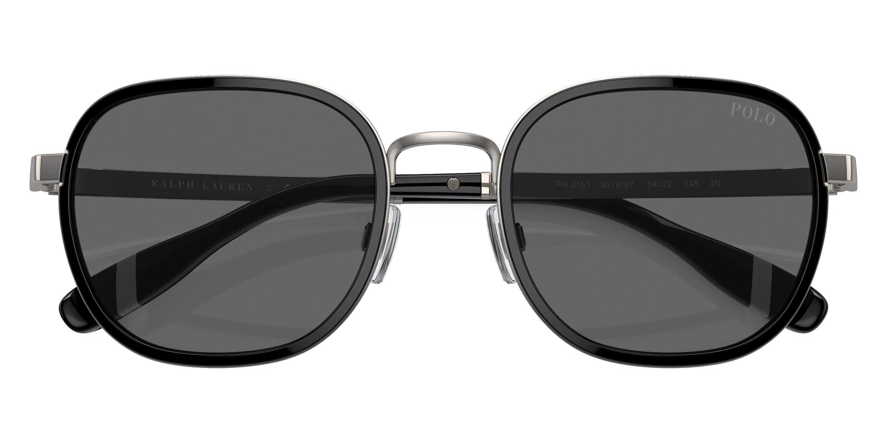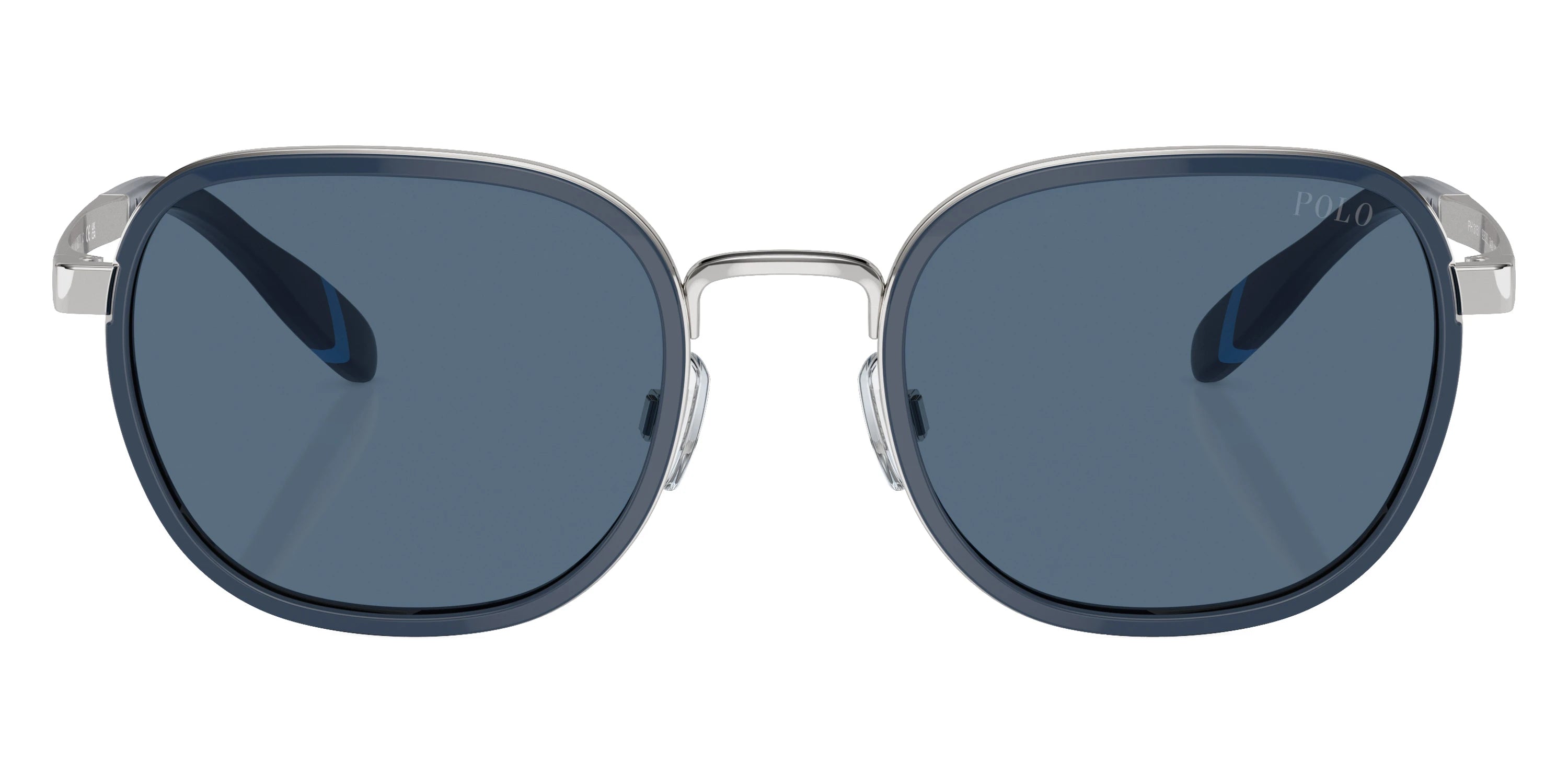 Blue/Silver (926080) Sunglasses with Dark Blue lenses (PH3151 926080 54) by POLO RALPH LAUREN™. Size: 54-22-145, Shape: Square, Material: Metal.