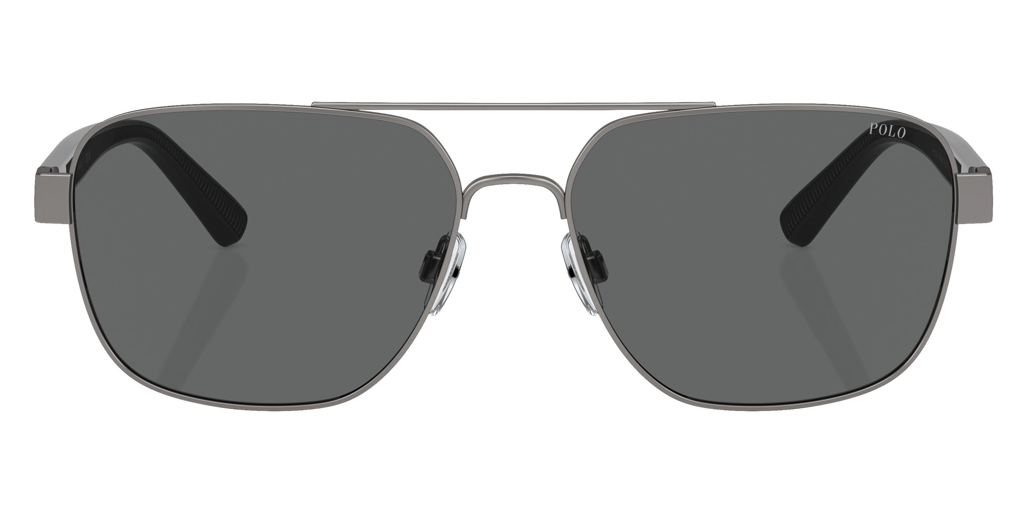 Matte Gunmetal (905087) Sunglasses with Dark Gray lenses (PH3154 905087 62) by POLO RALPH LAUREN™. Size: 62-17-145, Shape: Square, Material: Metal and Injected.