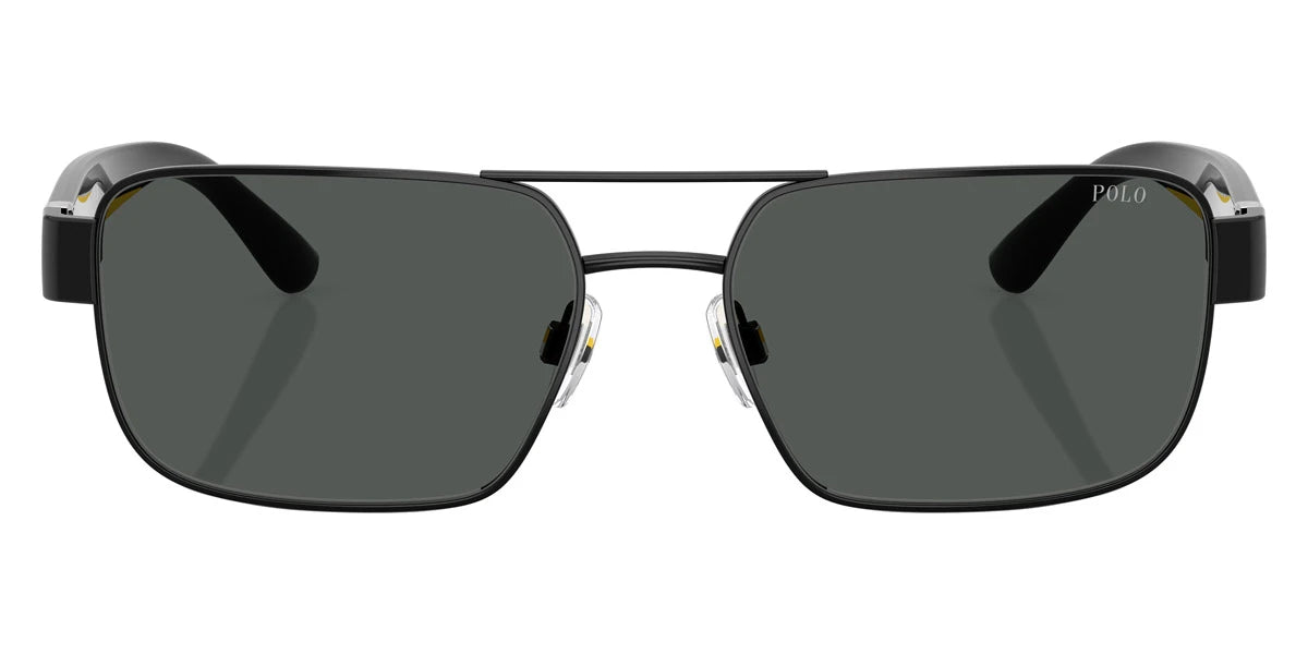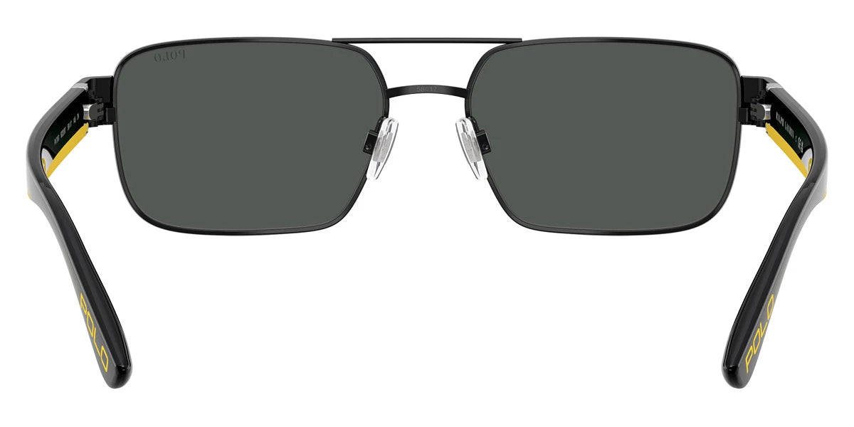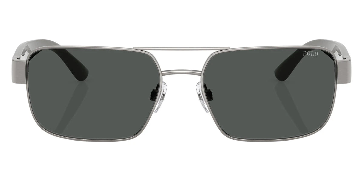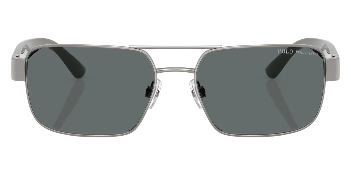 Brushed Gunmetal/Shiny Light Gray/Dark Gray (926681) Sunglasses with Polarized Dark Gray lenses (PH3161 926681 58) by POLO RALPH LAUREN™. Size: 58-17-145, Shape: Rectangle, Material: Metal and Injected.