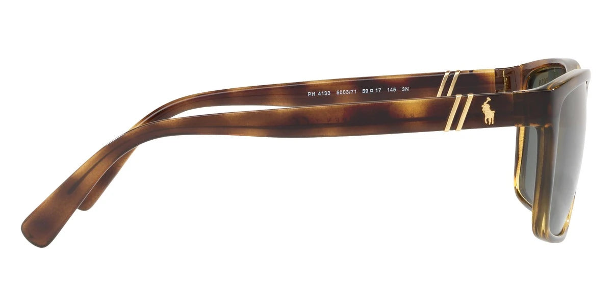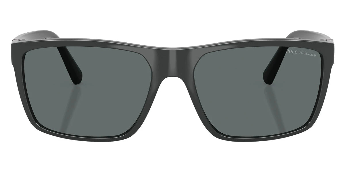 Shiny Dark Gray (558981) Sunglasses with Polarized Dark Gray lenses (PH4133 558981 59) by POLO RALPH LAUREN™. Size: 59-17-145, Shape: Rectangle, Material: Injected.