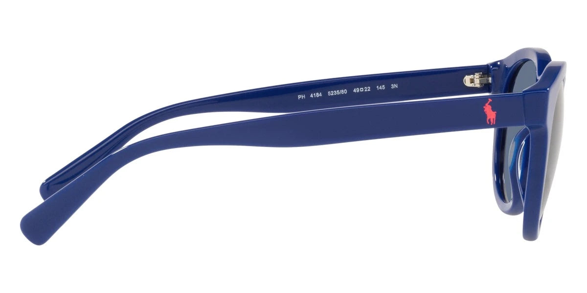 Shiny Royal Blue (523580) Sunglasses with Dark Blue lenses (PH4184 523580 49) by POLO RALPH LAUREN™. Size: 49-22-145, Shape: Wayfarer, Material: Plastic.
