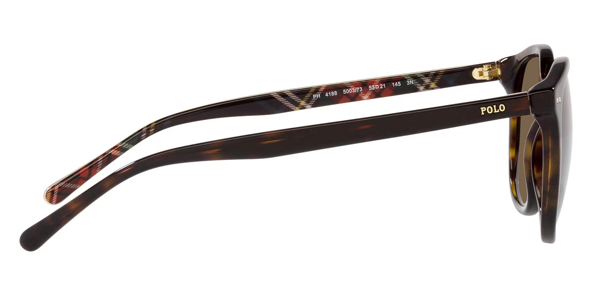 Shiny Dark Havana on Red Tartan (500373) Sunglasses with Brown lenses (PH4188F 500373 54) by POLO RALPH LAUREN™. Size: 54-21-145, Shape: Square, Material: Acetate.