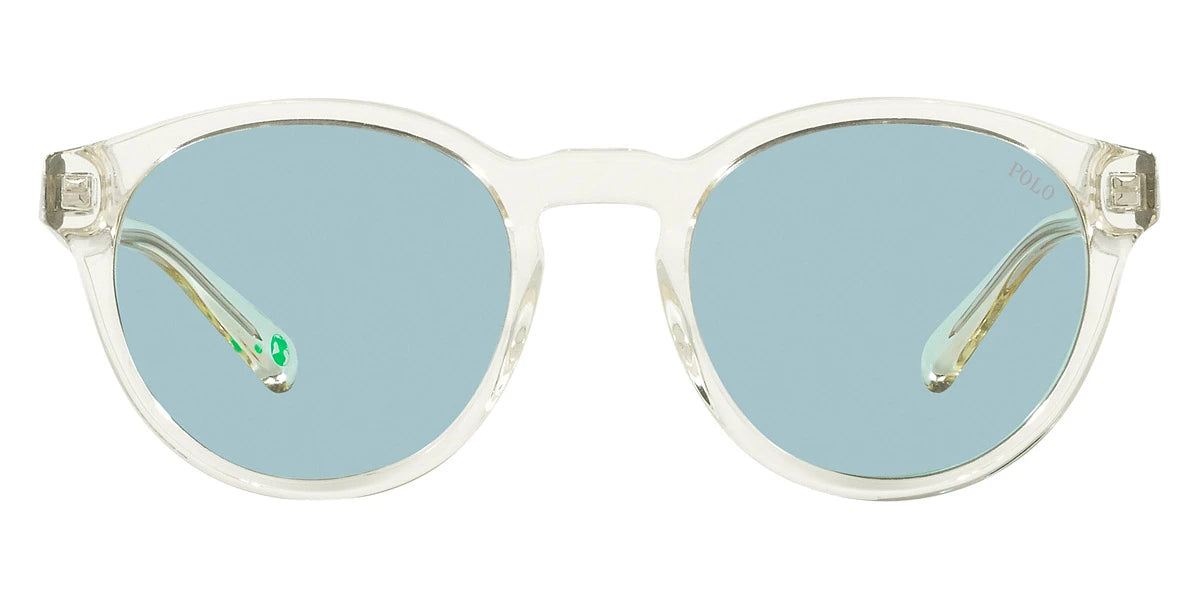 Shiny Transparent Pinot Gray (503480) Sunglasses with Light Azure lenses (PH4192F 503480 51) by POLO RALPH LAUREN™. Size: 51-21-145, Shape: Round, Material: Acetate.