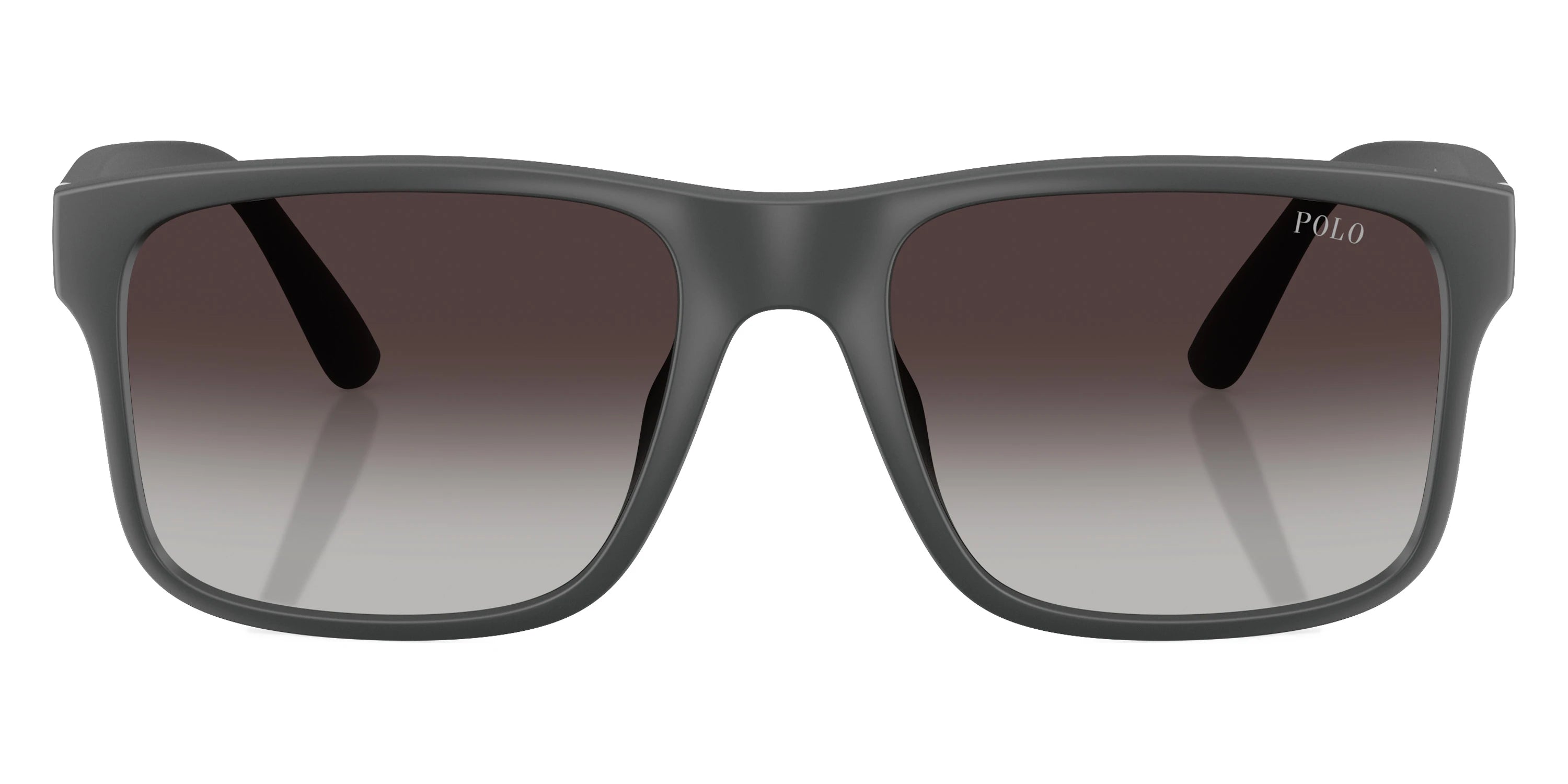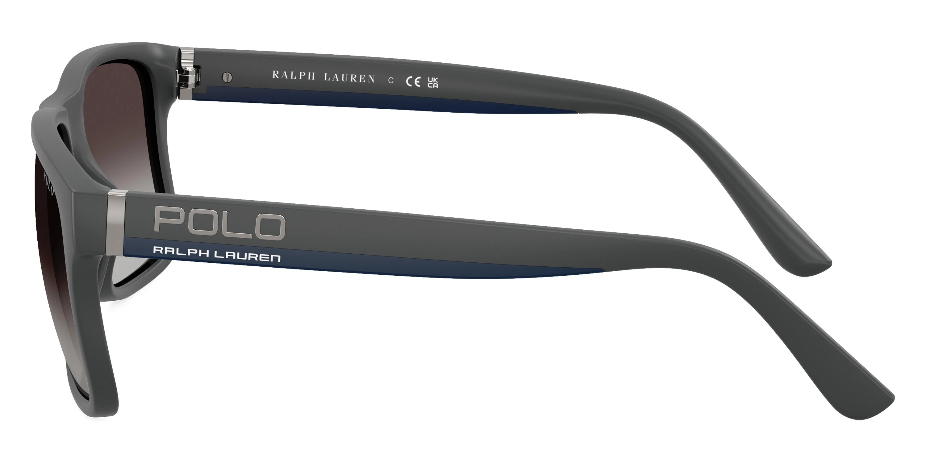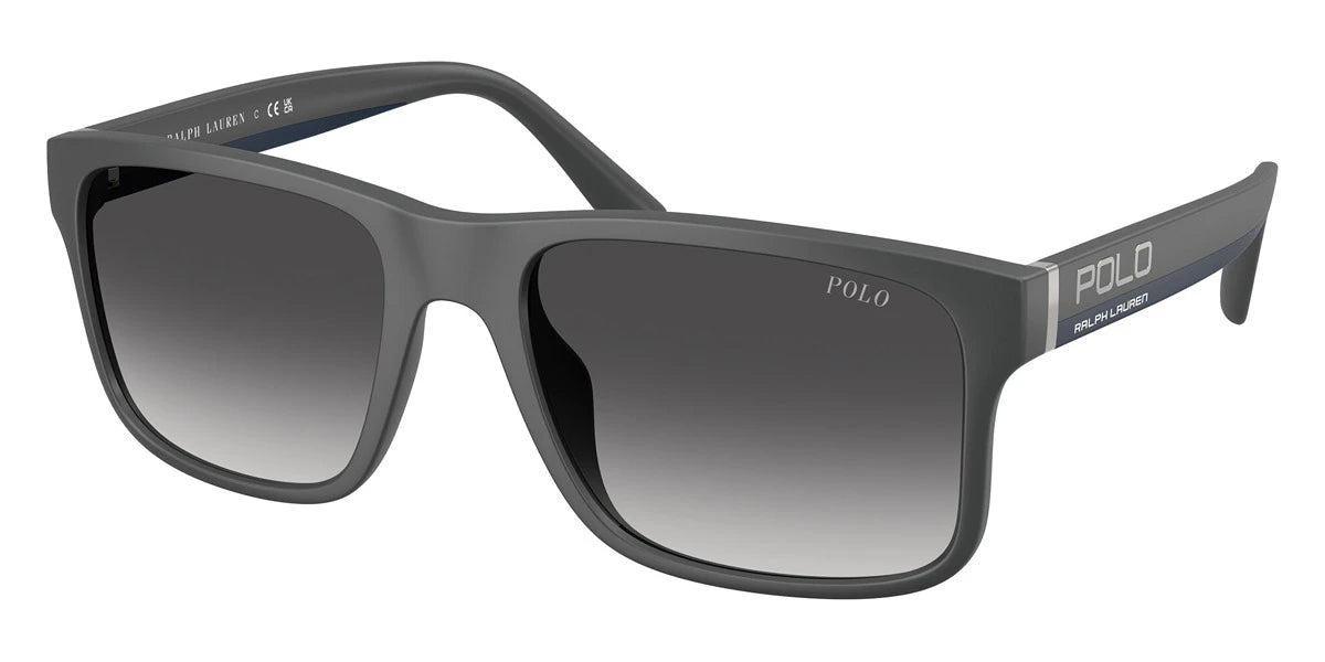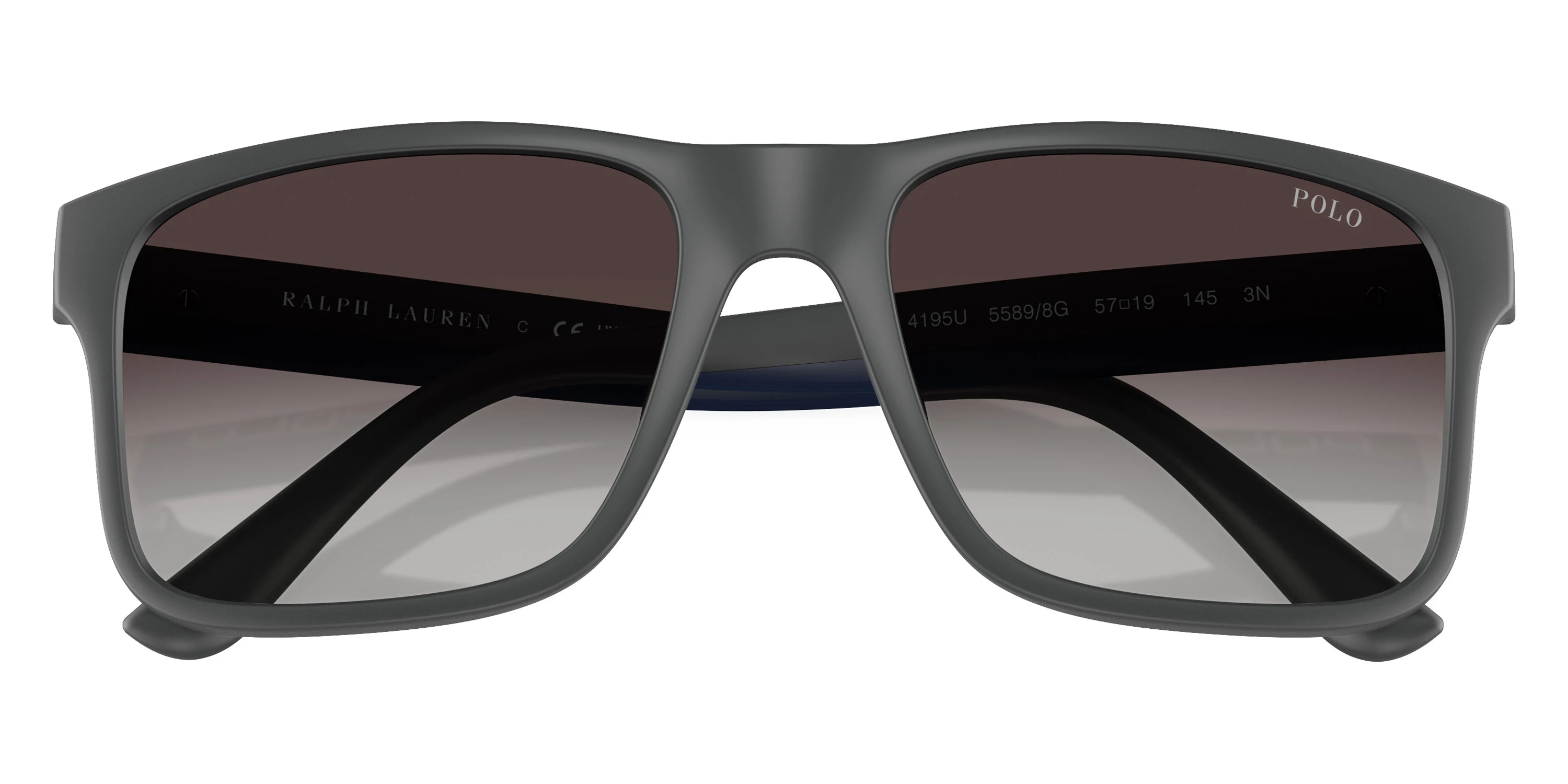 Matte Dark Gray/Royal Blue Rubber (55898G) Sunglasses with Gradient Gray lenses (PH4195U 55898G 57) by POLO RALPH LAUREN™. Size: 57-19-145, Shape: Irregular, Material: Injected.