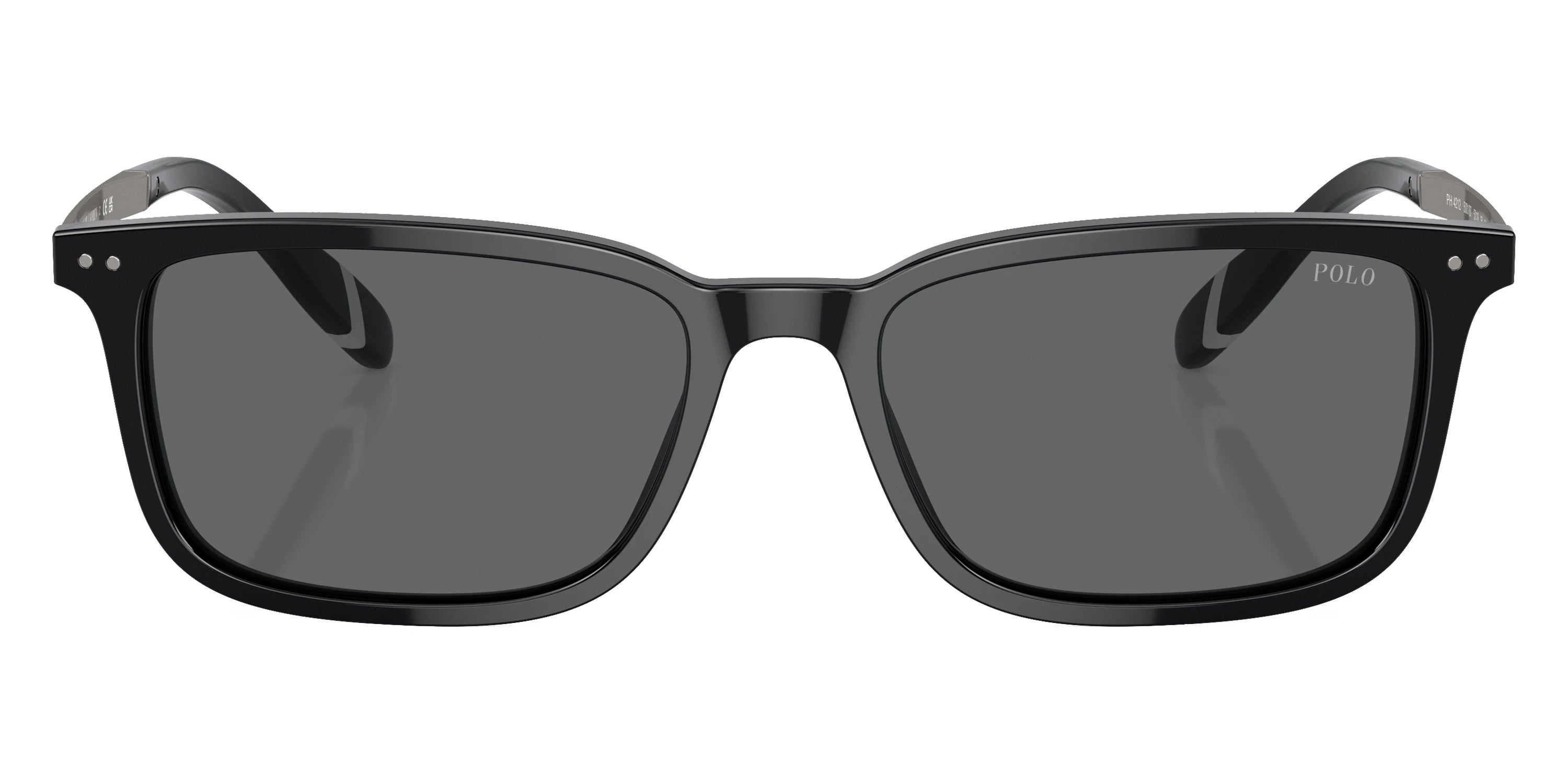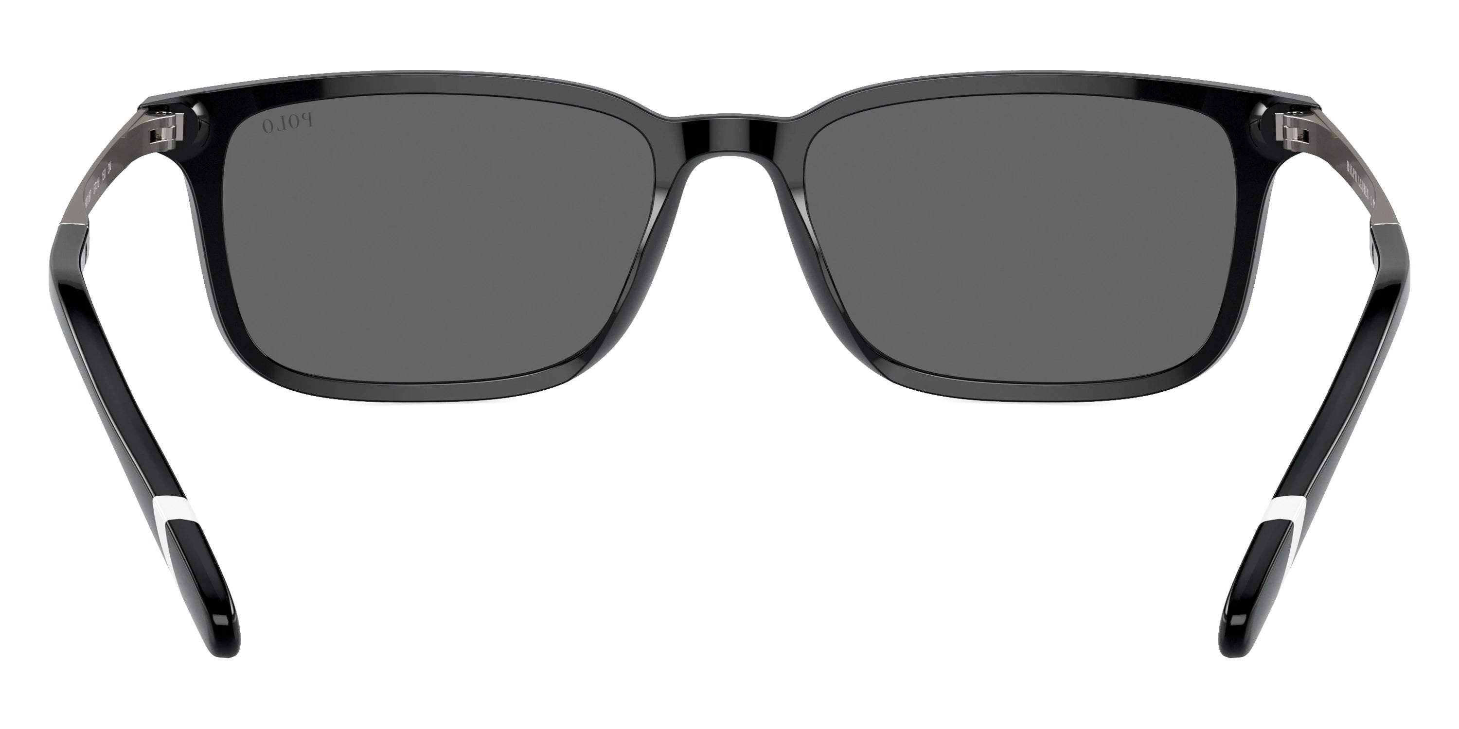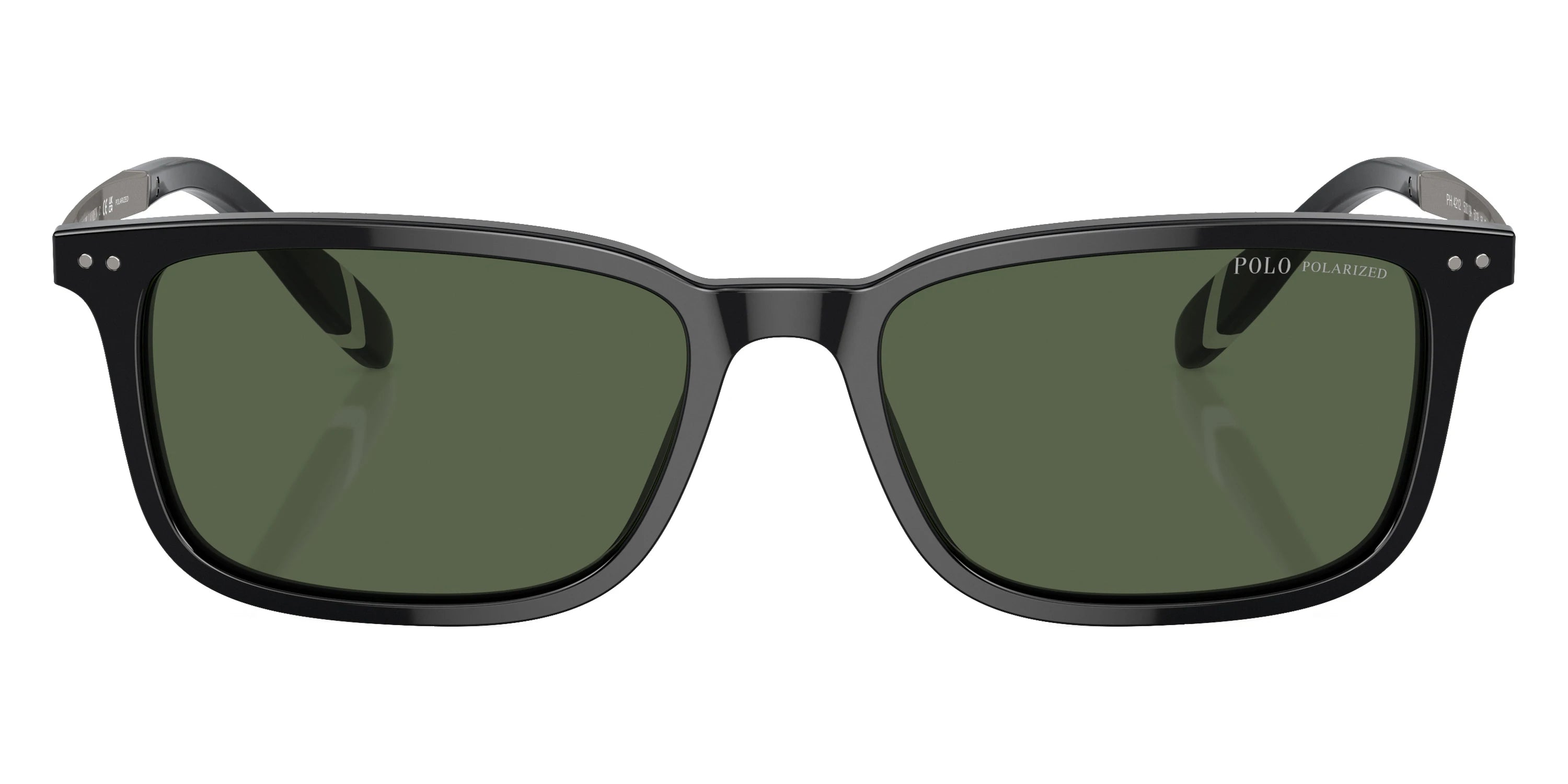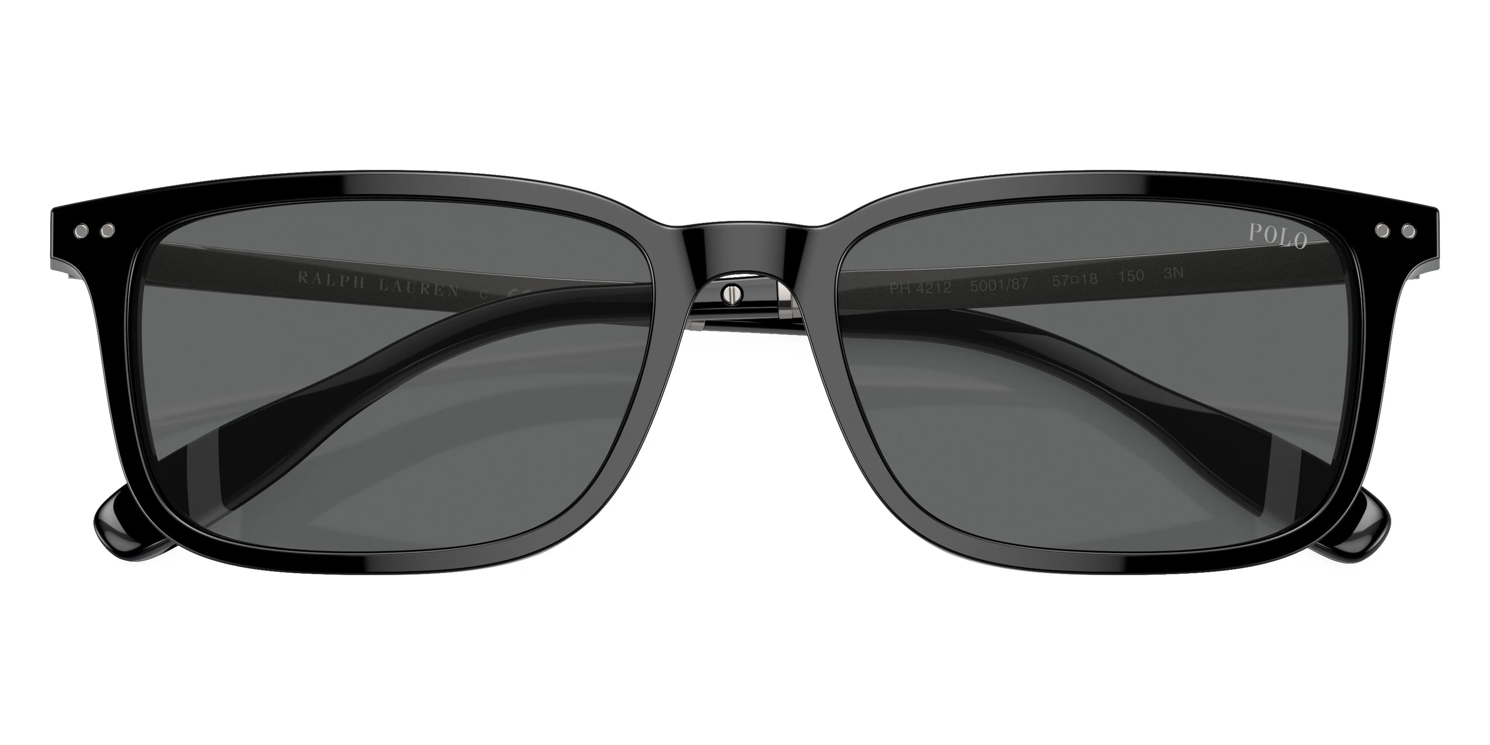 Shiny Black/Gunmetal (50019A) Sunglasses with Shiny Black Polarized lenses (PH4212 50019A 57) by POLO RALPH LAUREN™. Size: 57-18-150, Shape: Rectangle, Material: Acetate and Metal.