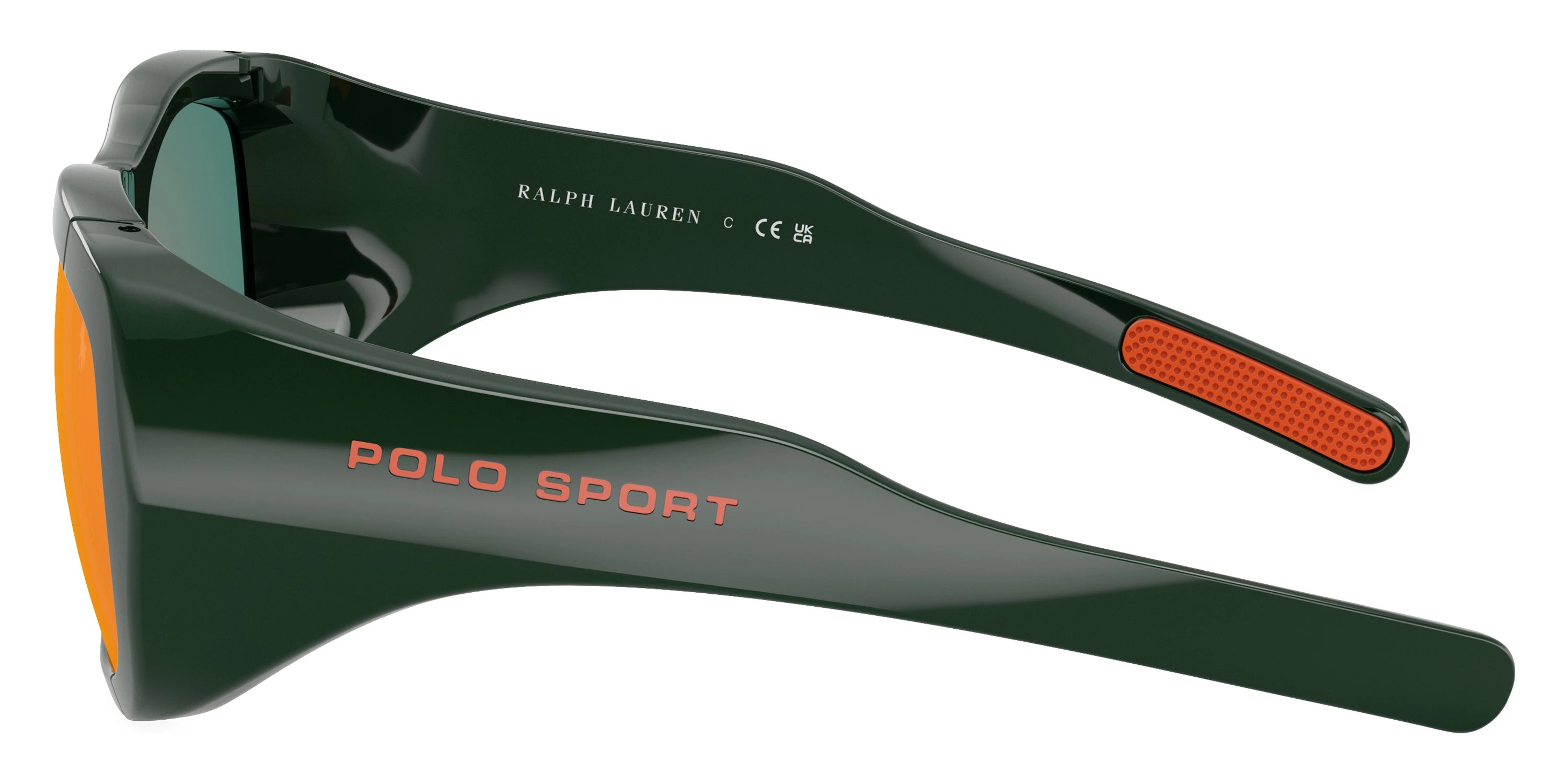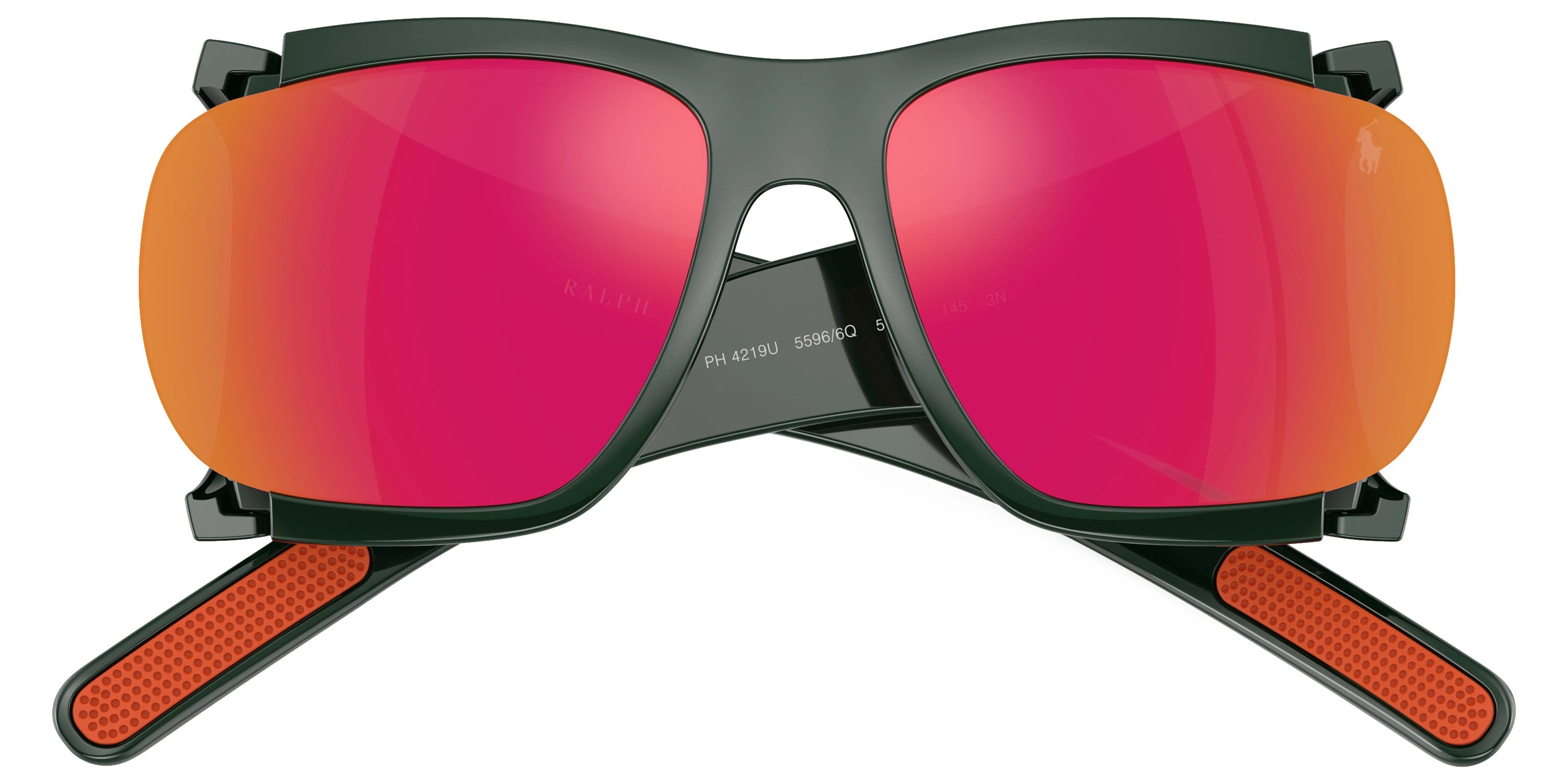 Shiny Green (55966Q) Sunglasses with Orange Mirrored Red lenses (PH4219U 55966Q 58) by POLO RALPH LAUREN™. Size: 58-16-145, Shape: Irregular, Material: Injected.